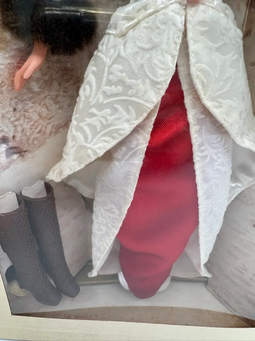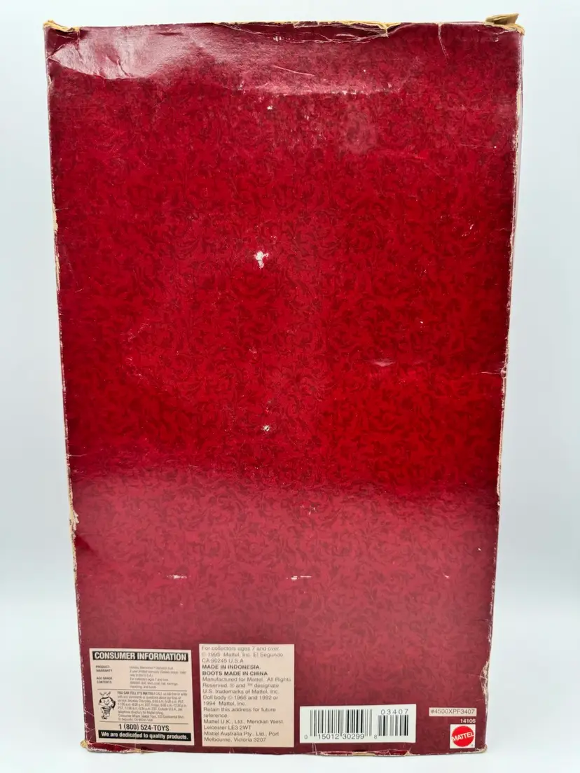 Details: Designed for collectors, articulated Barbie doll with rooted blonde hair styled under her hat, green eyes, red earrings and lip color, and brown high boots displayed inside the box.
