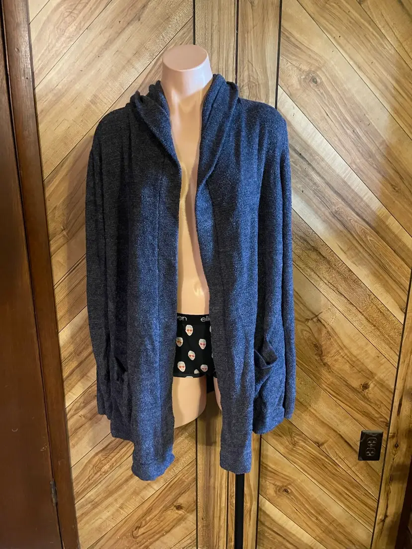#BarefootDreams #CozyChicLite #PlusSizeFashion #Size1X #NavyCardigan #HoodedSweater #LuxuryLoungewear #CozyVibes #BarefootDreamsCardigan #SoftKnit #BohoChic #Athleisure #VGUC #ResaleFashion