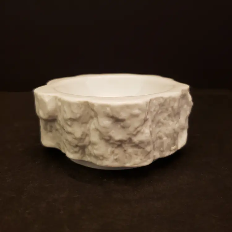 Brutalist style ashtray made of white porcelain by Bareuther Waldsassen Bavaria from the 1970s. Modern OP Art mid-century design. Style characterized by raw and rugged textured appearance. Made of glossy and bisque porcelain and has a matte finish. It is glazed on the inside, making it safe to use. Marked on the bottom with Bareuther Waldsassen Bavaria Germany with number 244. It was designed by artist Ernst Fenzl. From the "Silvana" series. Could be used as a trinket dish.