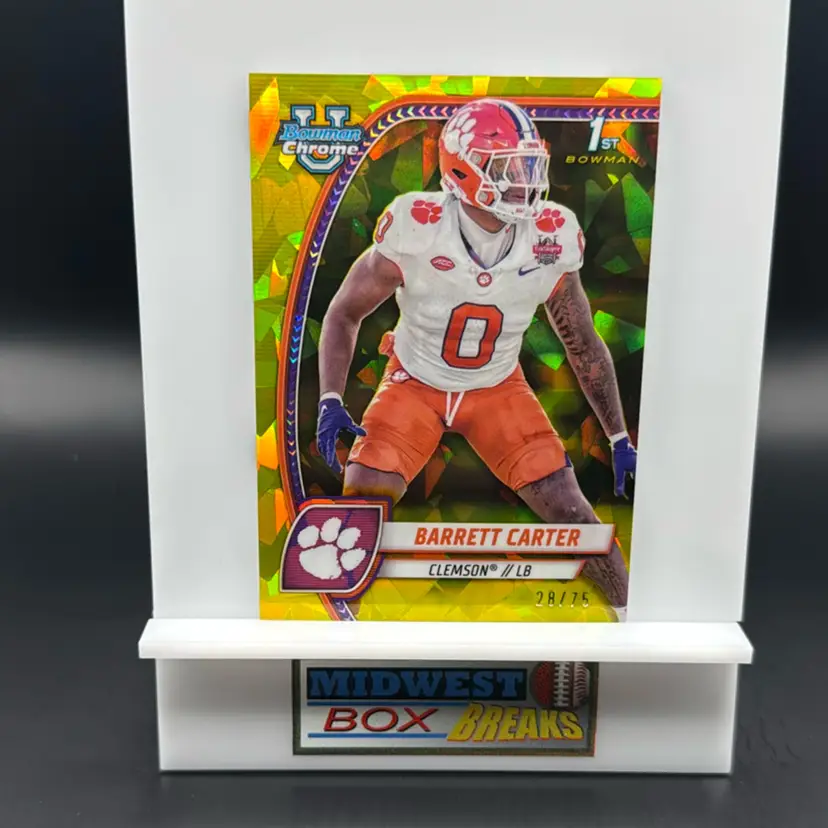 Barrett Carter 1st 28/75 Yellow 2024 Bowman University Chrome Sapphire Clemson MBBCRD