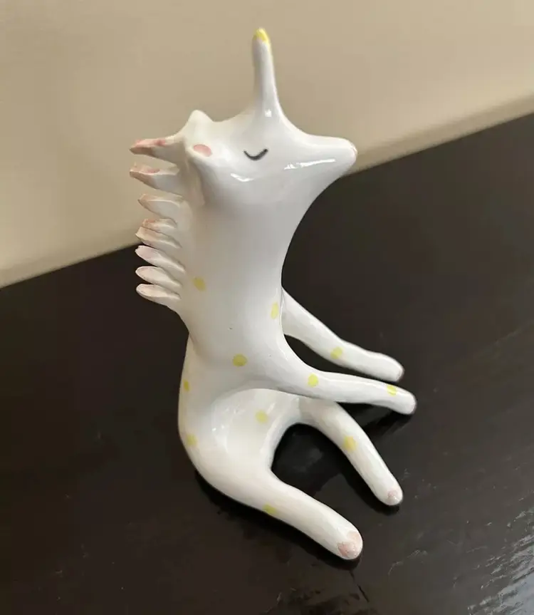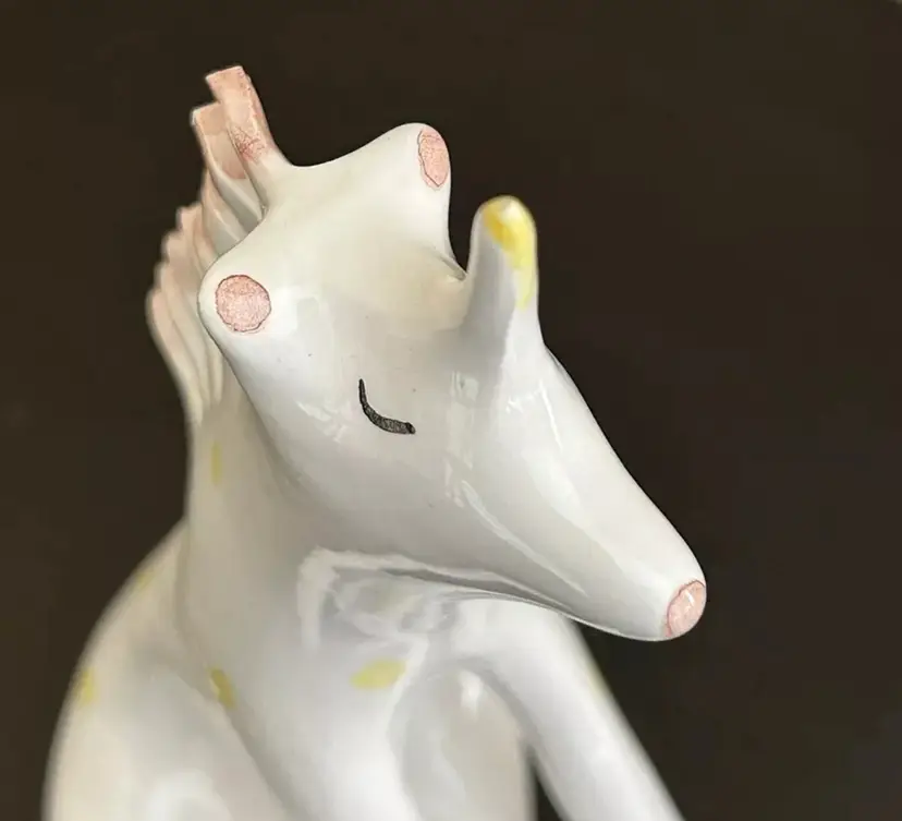 Whimsical polka-dotted unicorn sitting and making a wish! Made by BARRUNTANDO an all woman collaborative in Spain. Unique and hand made. Absolutely adorable!