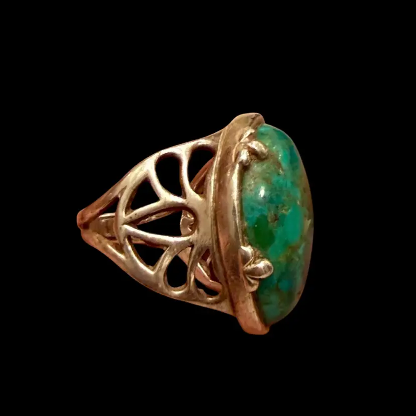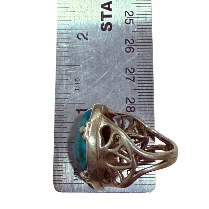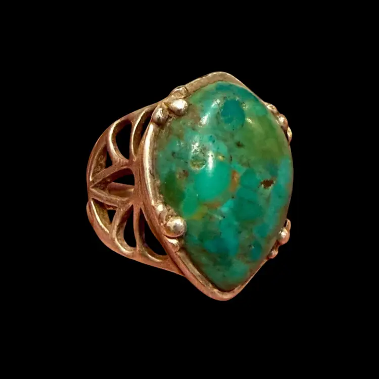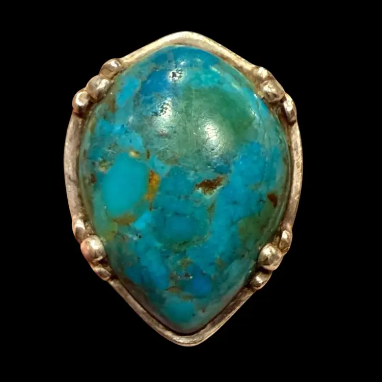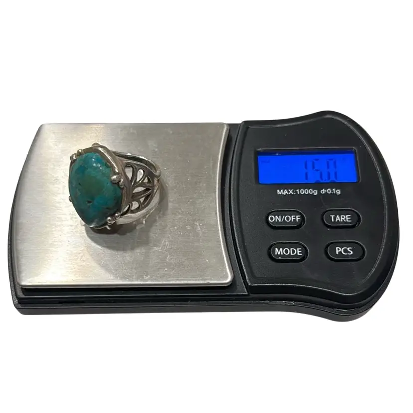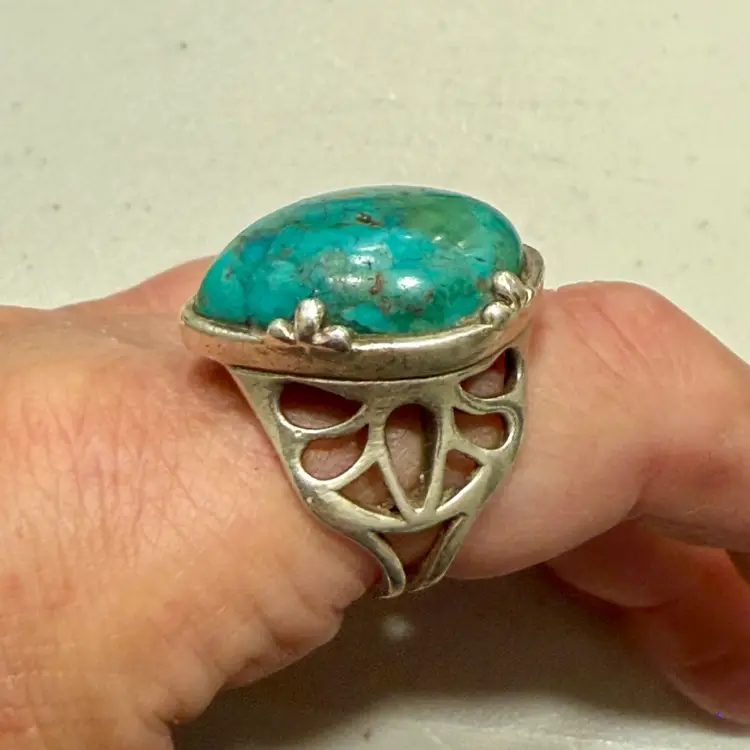 The Barse Designer Signed Southwest Sterling Silver Turquoise Teardrop Ring in size 6.75 is a beautifully crafted piece of jewelry with a Southwestern ethnic and regional style. The teardrop shaped turquoise stone, is set in 925 sterling silver and is hallmarked Barse. Ring weighs 15g.