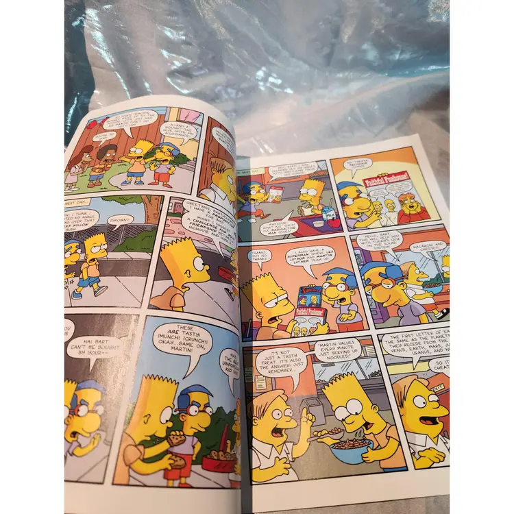 Bart Simpson Comic Book # 82 Release April 2013 Bongo Comics publisher Continuing adventures of mischievous Bart Stories are Martin Chronicles, Springfield Babies, Nights of the Dinner Table and So Long, Chum! Condition issues crease on cover and back page - but no rips or tears