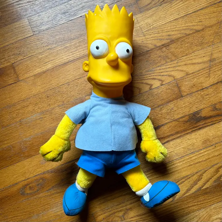 This is a large Bart plush with a hard head from 1990. This Bart, as well as similar ones made by Acme, weren’t for sale - you could only win them as arcade prizes. He’s cool!