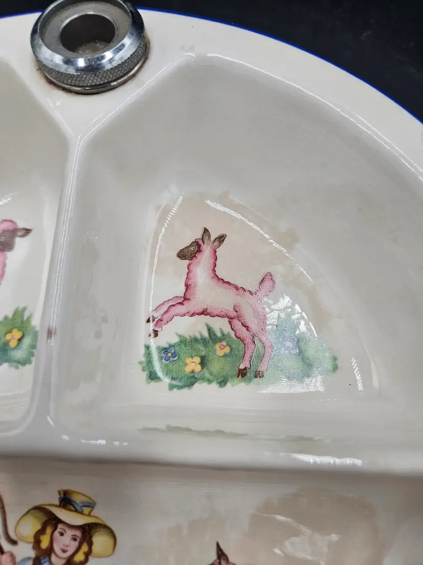 Missing decoration on the screw for the well. Stains and crazing all over piece.