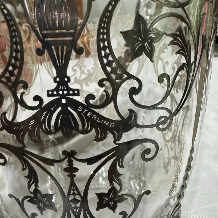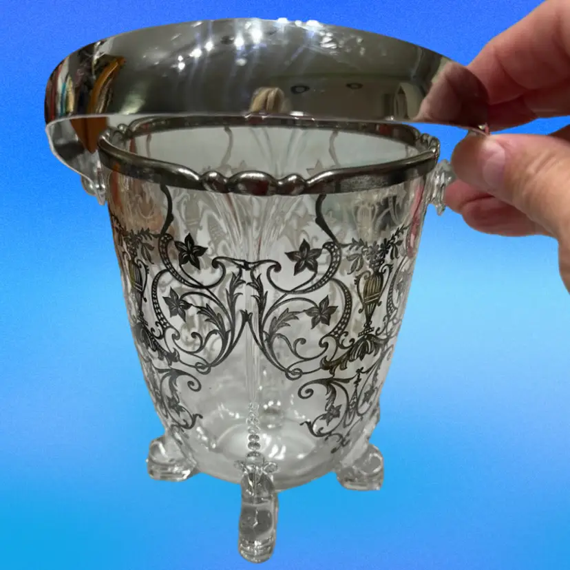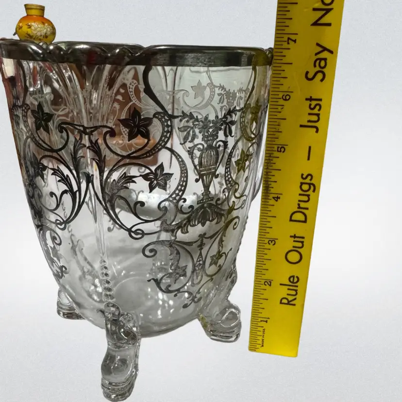 The feet are actually shaped like shoes with laces. Or maybe coy fish. The bucket is in great mid century condition. The sterling silver needs a little polish unless you enjoy the patina.