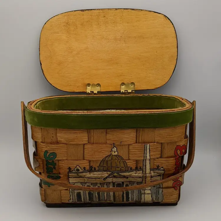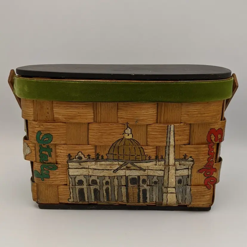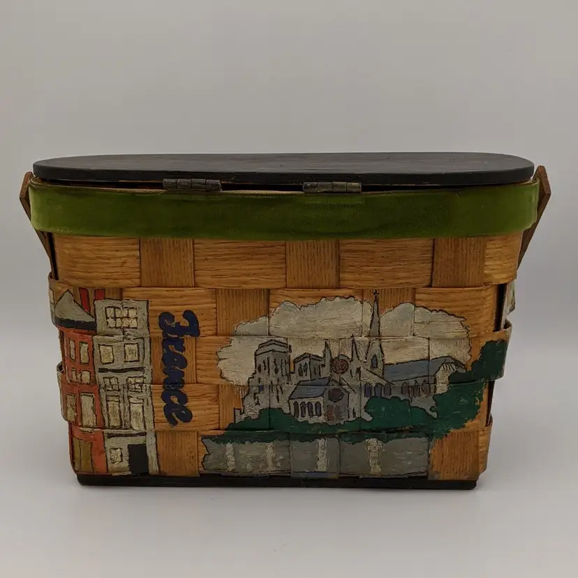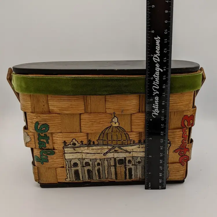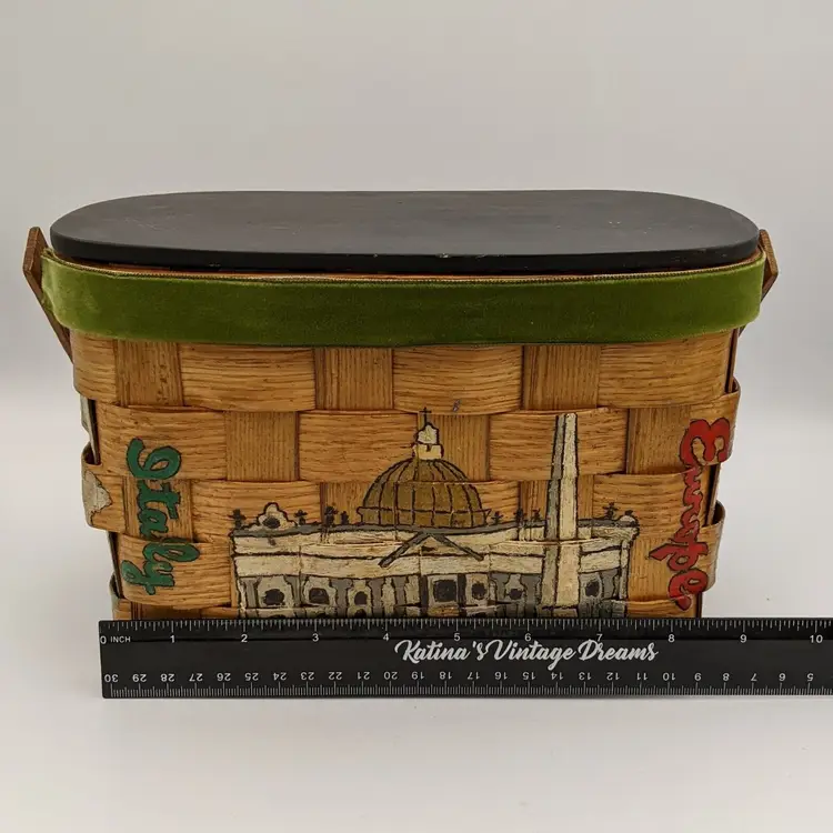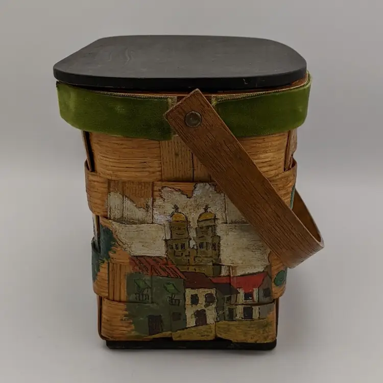 minimal wear on the black paint on lid Material: Wood, Fabric, Mixed Materials Brand: Basketville Item Height: 6.5 in Country/Region of Manufacture: United States Item Width: 10 in Item Weight: 1 lb 5.3 oz Handmade: Yes