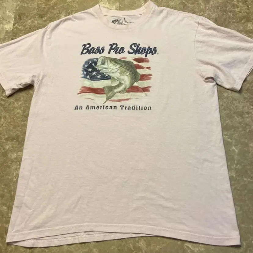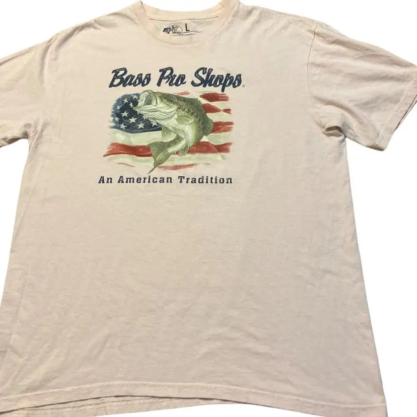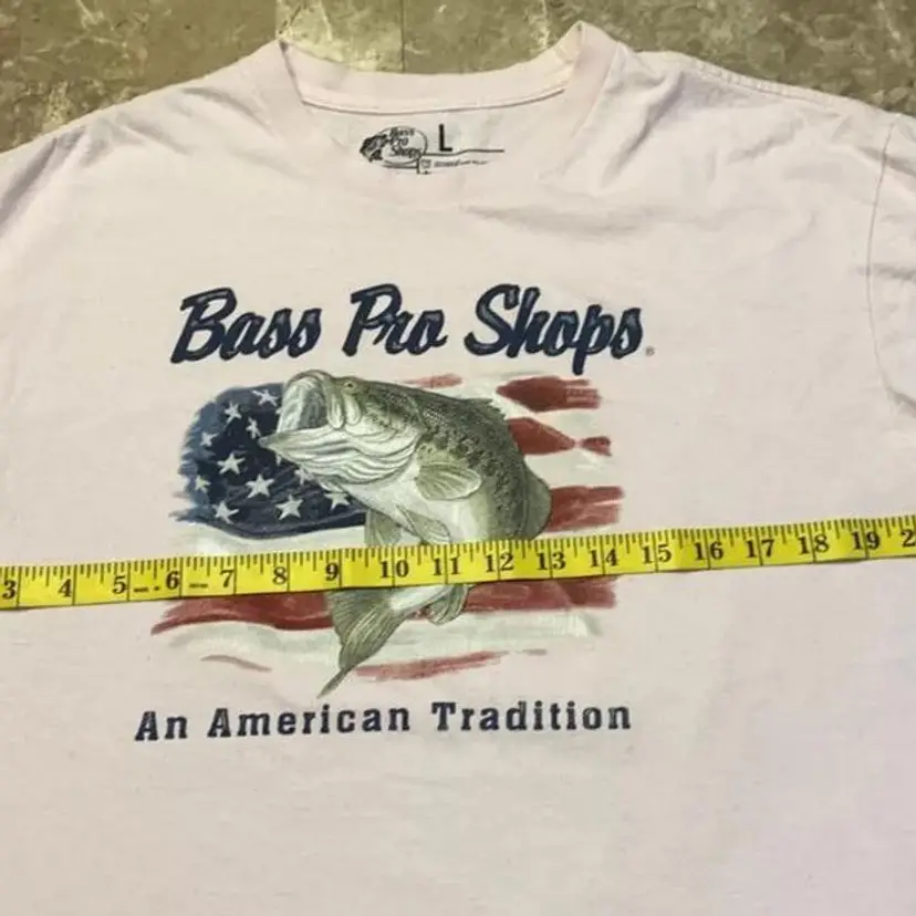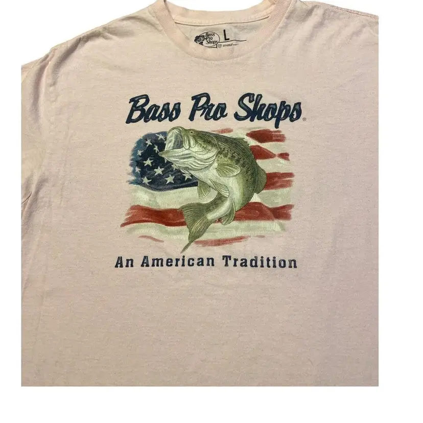 This Bass Pro Shops T-Shirt is perfect for a casual day out with its crew neck and pullover closure. Made of 100% cotton knit fabric, this lightweight and easy-care T-Shirt features a raglan sleeve and a solid pattern in a beautiful shade of pink. The American Flag and Bass Pro logo add a touch of outdoor and classic theme to this women's T-Shirt. The T-Shirt is available in size L and is suitable for women who love fish. The short sleeve and regular fit make it a comfortable wear. Machine washable and made in Nicaragua, this T-Shirt is a must-have for every woman who wants to add a touch of style to her wardrobe.