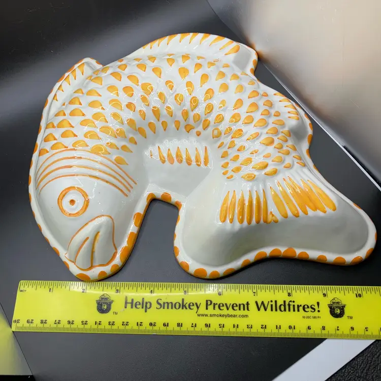 Has loop to hang. One scale has glaze missing (see pics). Has sticker on back for Bassano Italy.