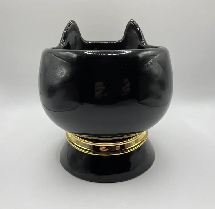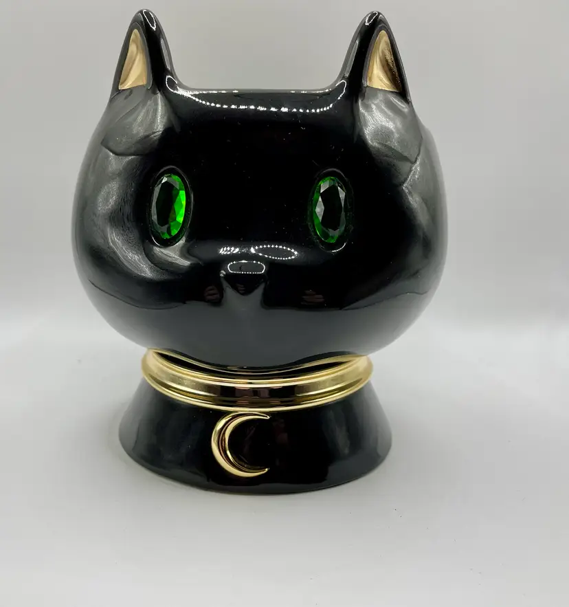The Bath & Body Works Halloween Black Cat Jeweled Green Eyes 3-Wick Candle Holder is a decorative and large ceramic candle holder in the shape of a cat. The glossy black cat features jeweled green eyes, adding a festive and seasonal touch to any room, especially during Halloween. With a free-standing design, this candle holder is suitable for 3-wick candles and is a stylish addition to any home decor. Made in China, this gothic-inspired candle holder is a perfect choice for those looking to add a spooky and charming ambiance to their space.