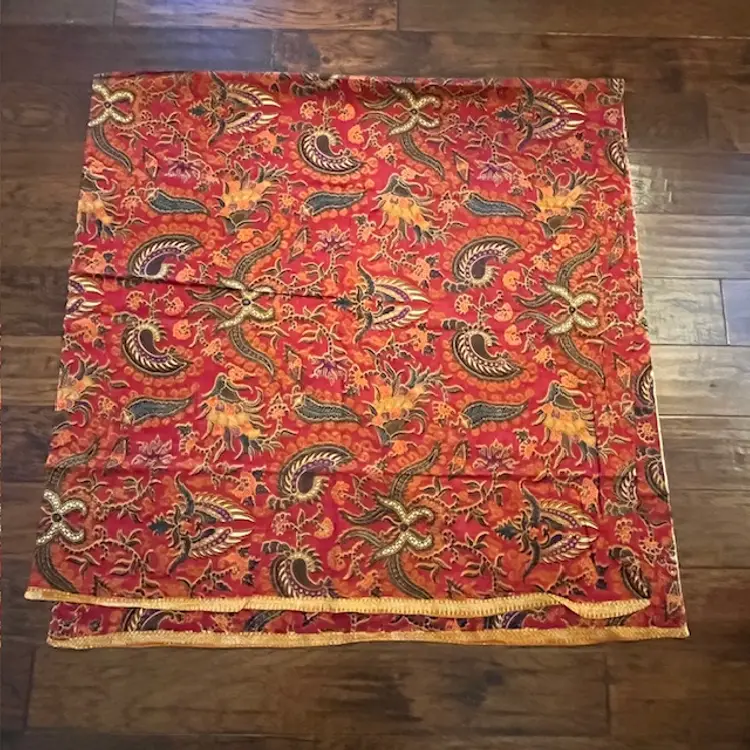New with tags - 39" x 90" long - Beautiful colors would make a wonderful tablescape. All original tags are still on the cloth.