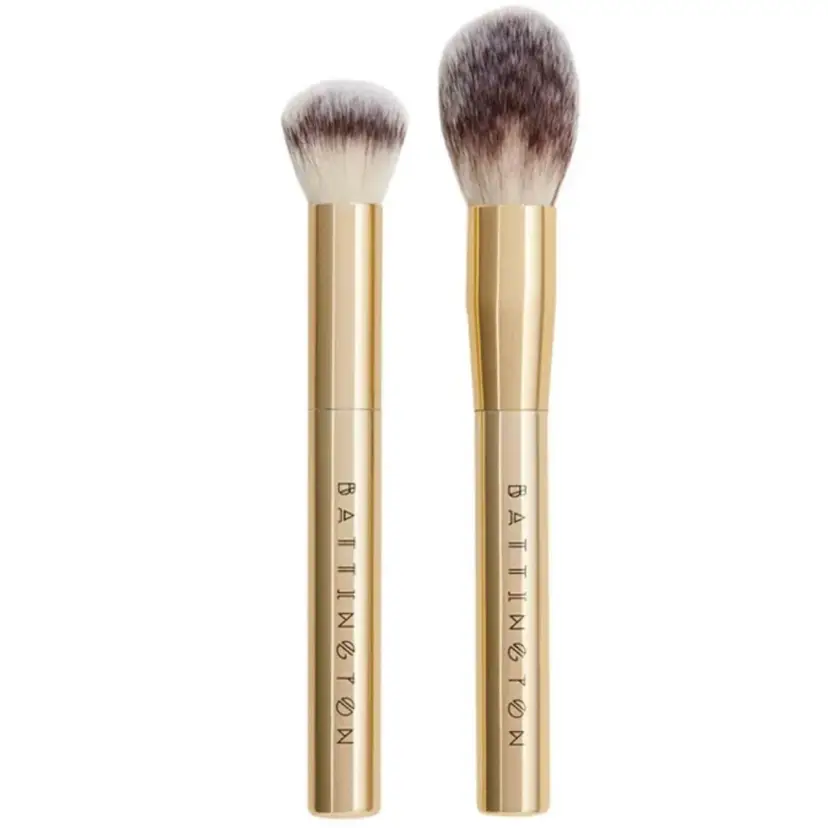 Add these beautiful gold brushes to your beauty collection, the Battington Beauty Powder & Contour Brush Set are perfectly pack in this beautiful gold to really stand out. Experience the transformative power of contouring with the only brush you'll ever need to sculpt, enhance, and define like a pro. This brush set is made out of Taklon hair, which has many benefits