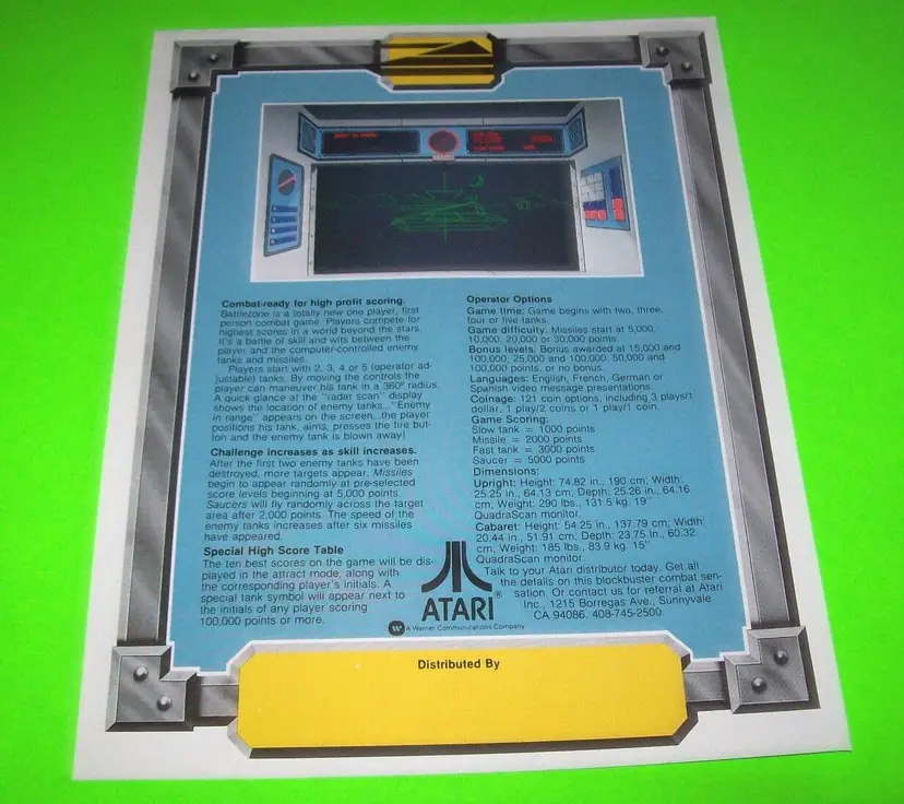 Original: Paper Promotional Advertising Flyer Arcade: Flyer Modified Item: No Country/Region of Manufacture: United States Original/Reproduction: Original Theme: Retro Gaming Year: 1980 Game Title: BattleZone Brand: Atari