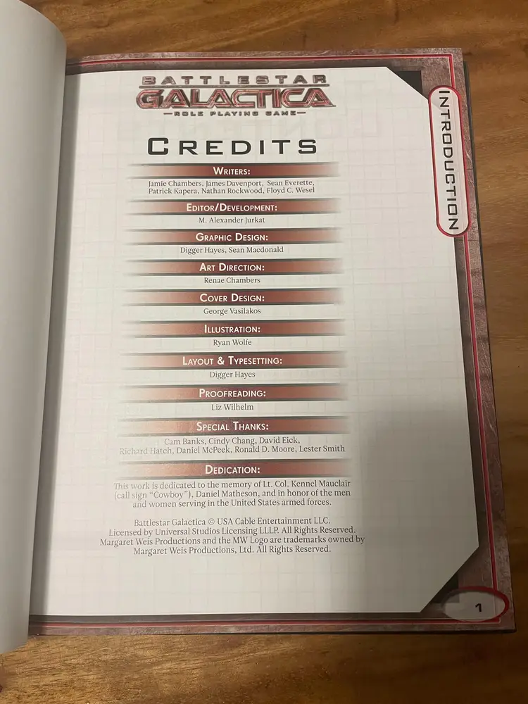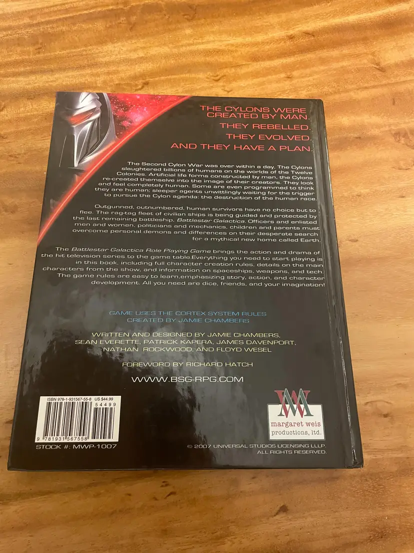 Battlestar Galactica RPG Core Rulebook Hardcover Margaret Weis. Light general wear, has a persons name written inside front cover and the name of book on side pages, otherwise a higher grade copy, see pics.