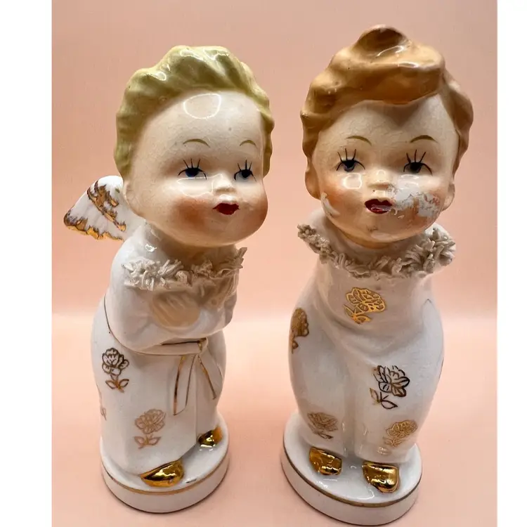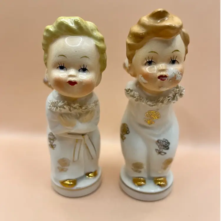 5.25” tall each Girl EVC, Boy GVC no chips or cracks but paint wear on face, features in good condition