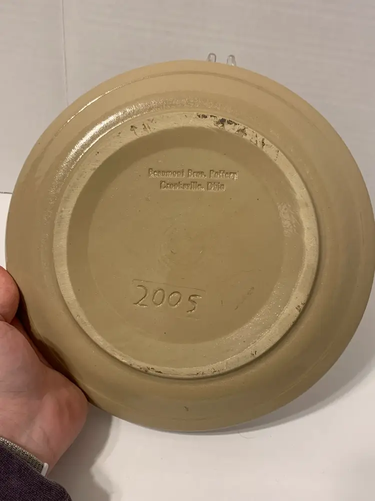 Nice stoneware salt glaze pottery. Marked on the bottom by BBP and dated 2005. There is some crazing and glaze wear from use, but no damage.