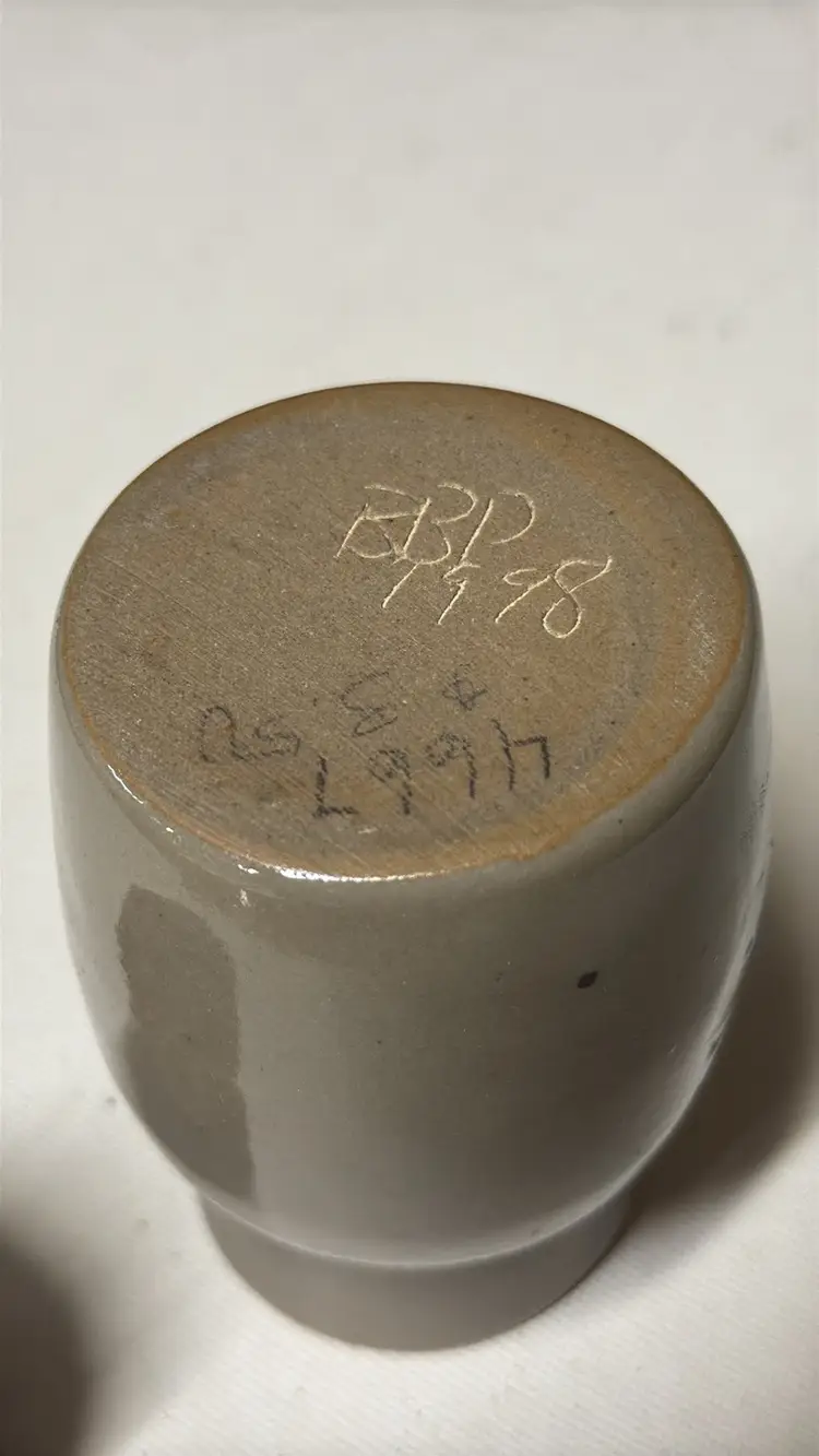 Vtg BBP Beaumont Brothers Pottery Small blue Snowman Jar Crock With Cork 3” tall without cork 1.5” diameter opening on top Signed BBP 1998 Like new condition (25128244)