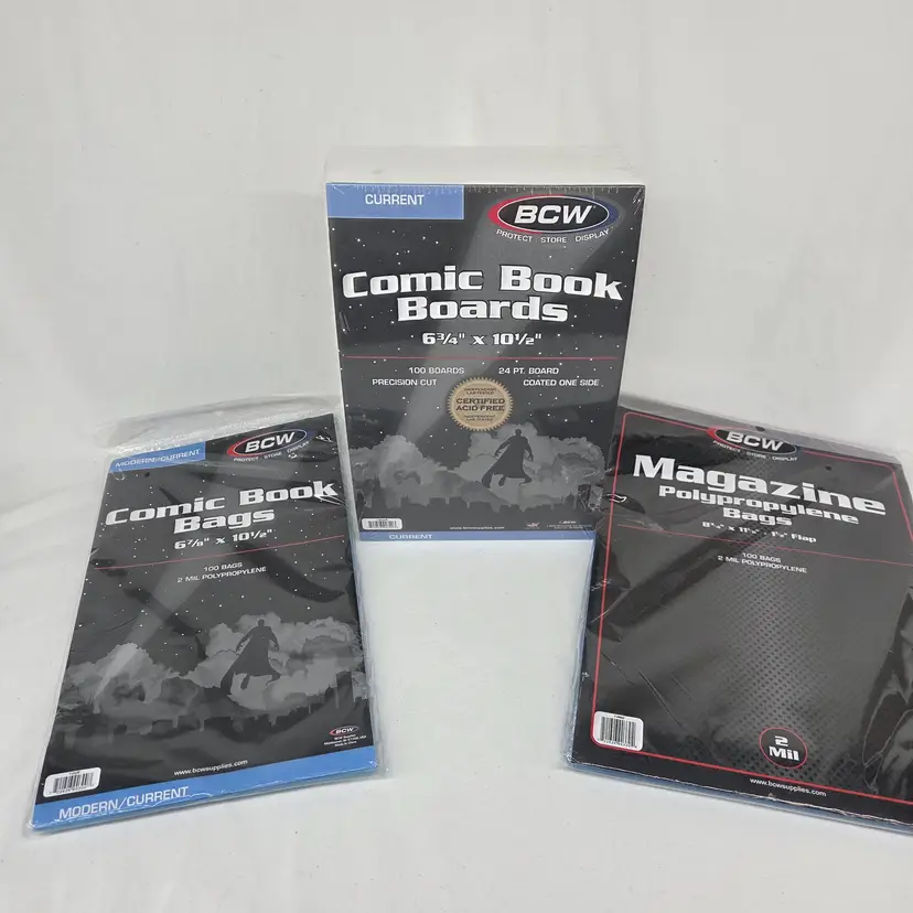 Came from an estate sale looked to be in unopened condition. Comic book boards have a bend. Please look at photos.