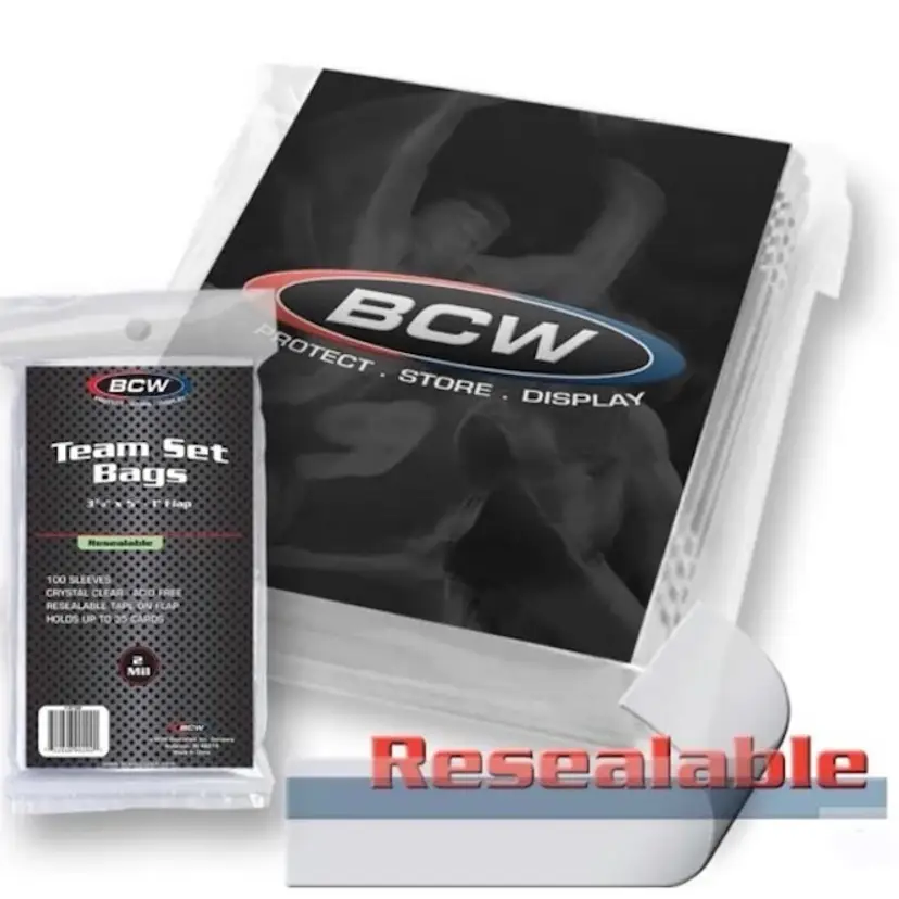 100 per pack Adhesive strip on flap to close bag Holds up to 35 standard cards Holds up to 5 standard toploaders