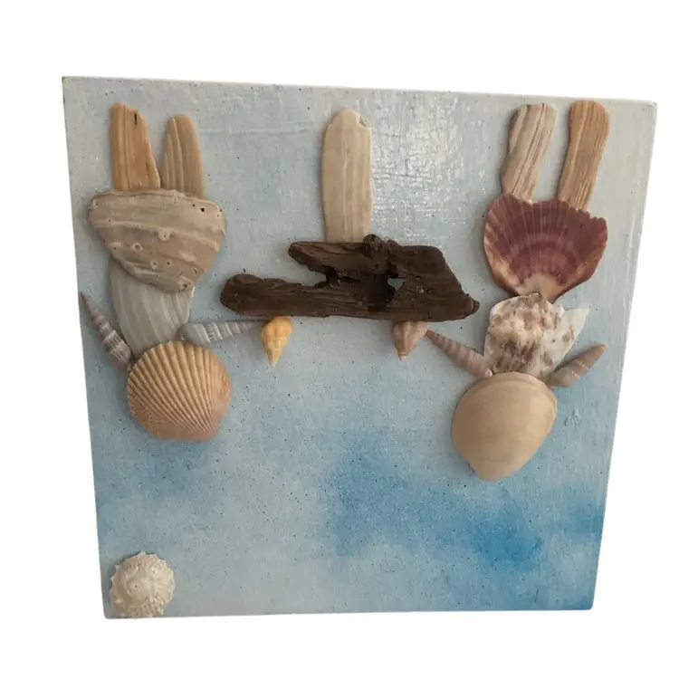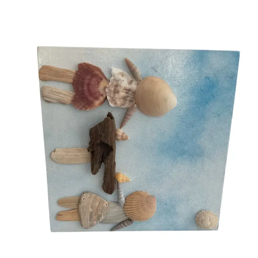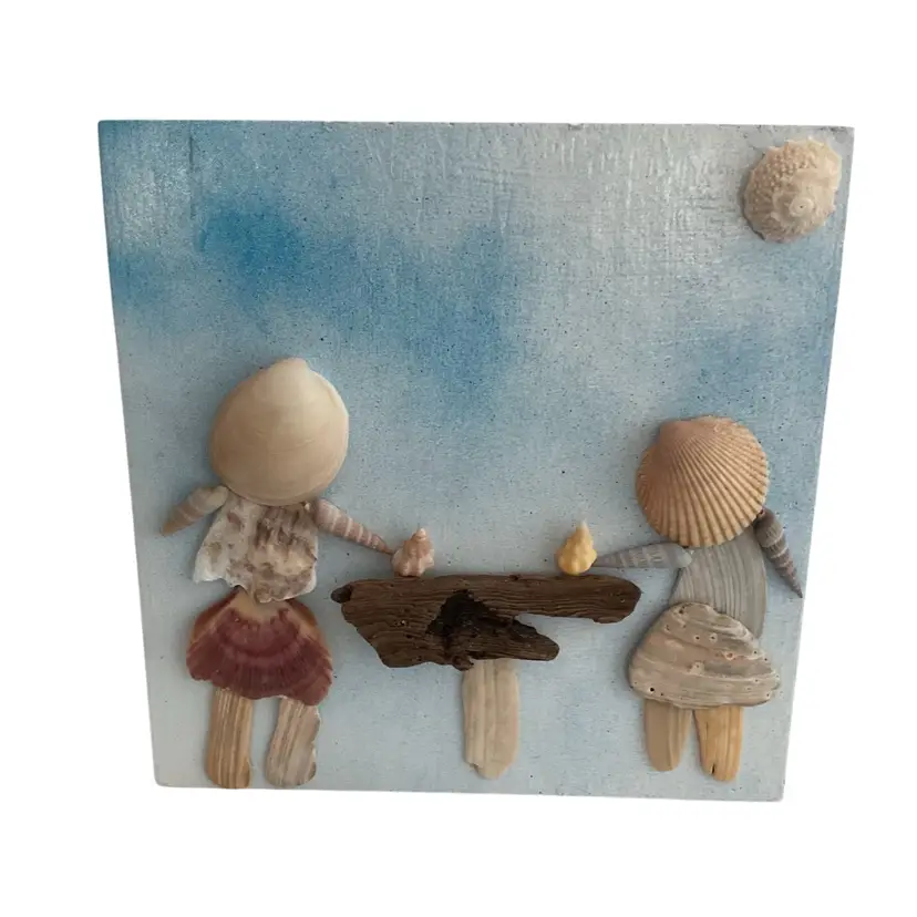 These best friends were made from a variety of seashells. We will never take a shell with a living creature still calling it home. The shells are thoroughly cleaned and then attached to the frame using E6000 glue. The bar is made from drift wood also from our beach. Enjoying each other’s company with a cocktail in their hands. This measures approximately 8” tall, 8” wide and 1 1/2” deep. We do take custom orders, just message us to create a special order. Browse our shop for other shell creations. I do combine shipping if purchasing more than one item from our shop. Shipping overages will be refunded at the time of printing the label.