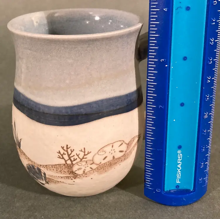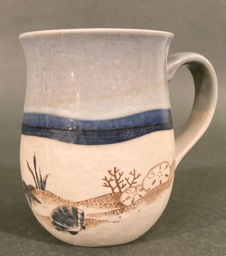 Really cute unmarked mug with seashells, sand dollars, and starfish. Excellent condition with no chips or cracks.