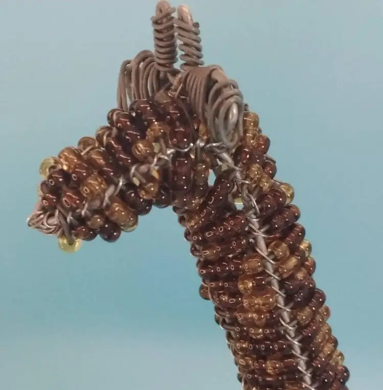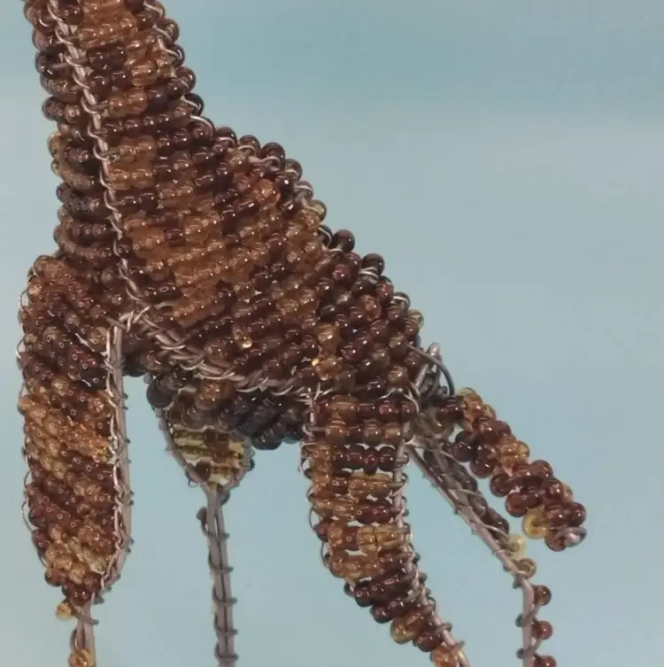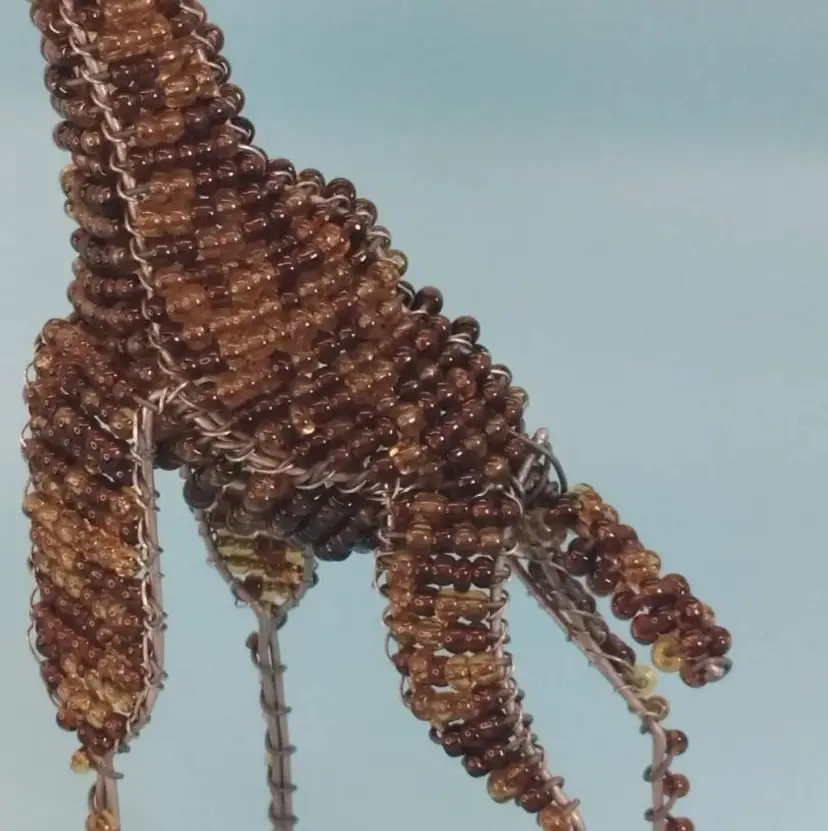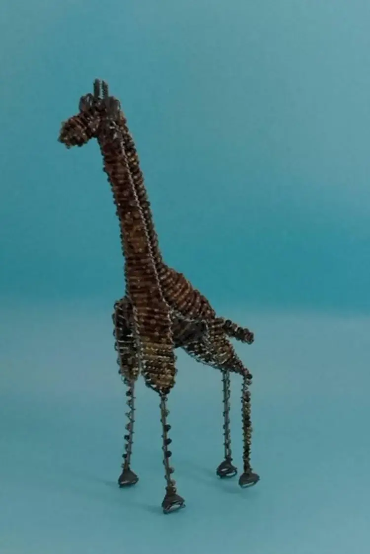 This beaded giraffe African made, is a wire based frame with assorted glass seed beads. It is used vintage and is in excellent condition. It is sturdy and strong and stands on its own.