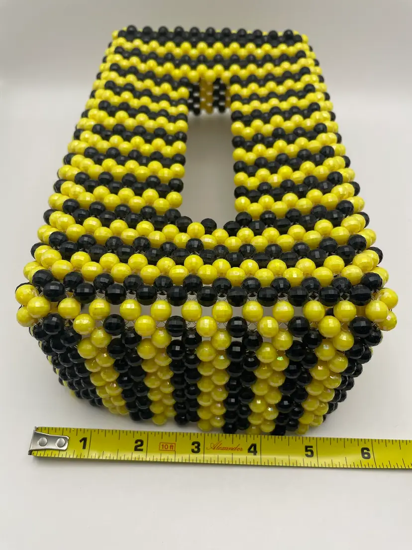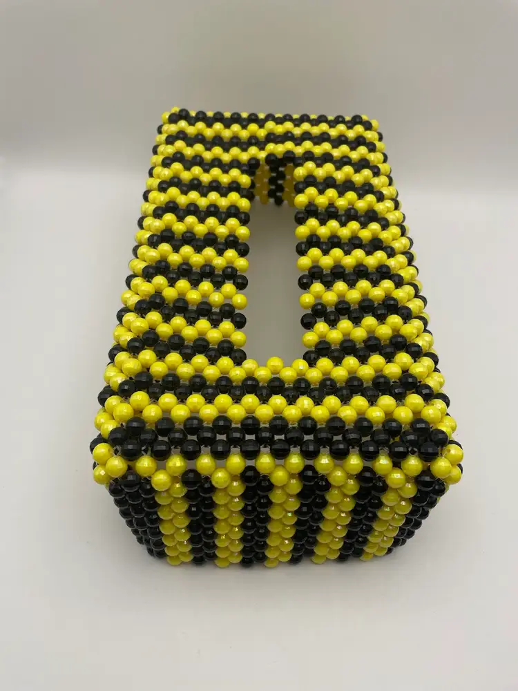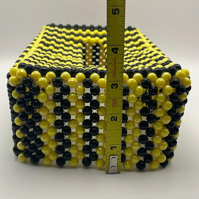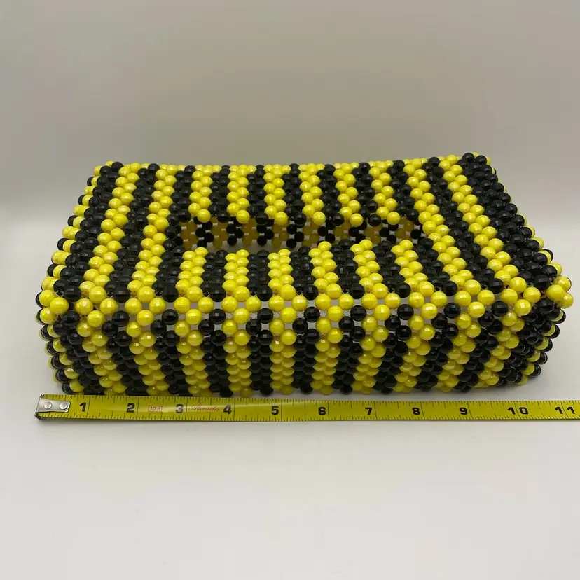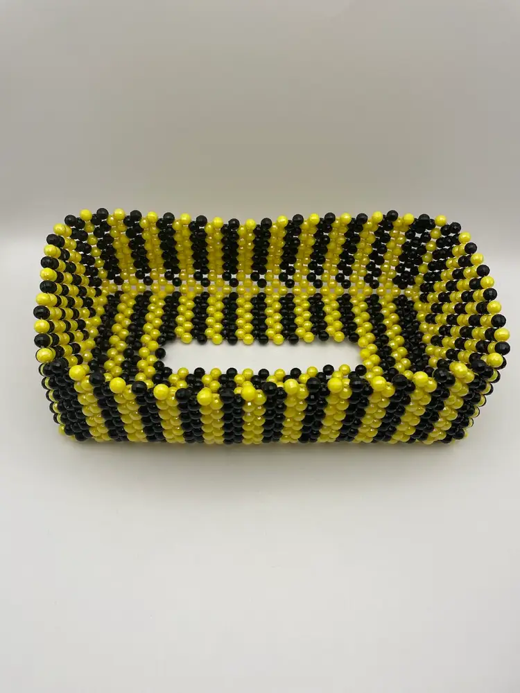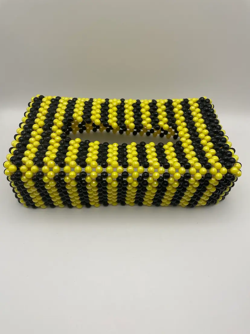 Beaded Tissue Box Cover in Yellow/Black, 11” in length