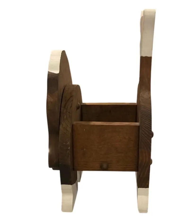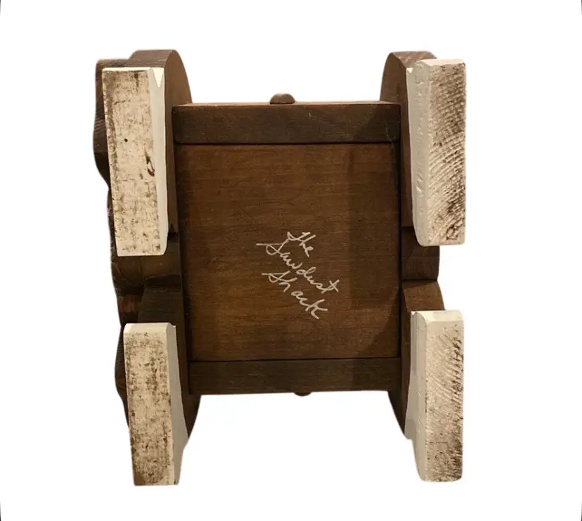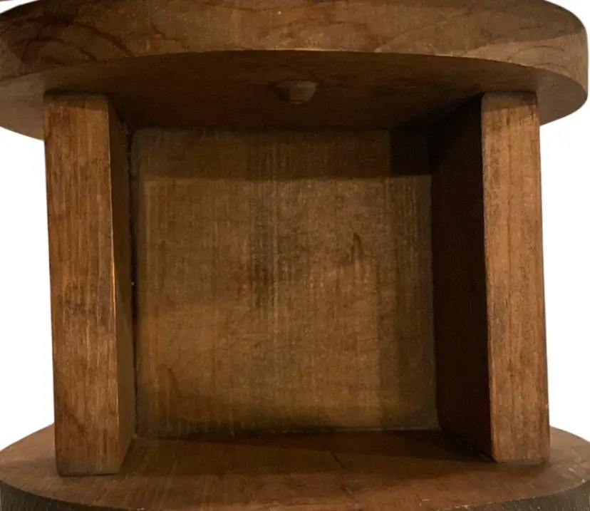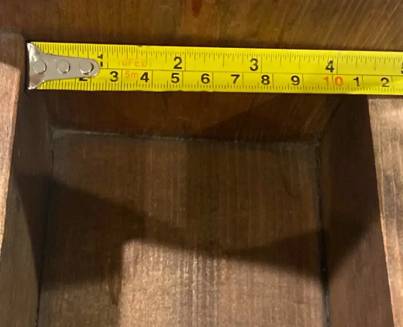 The inside area where a plant can sit measures 4.25”x4.25” and has depth of 2.5”. There is a slight crack in wood on inside area that does not affect anything! See last picture. He’s really a cutie! Plant not included.