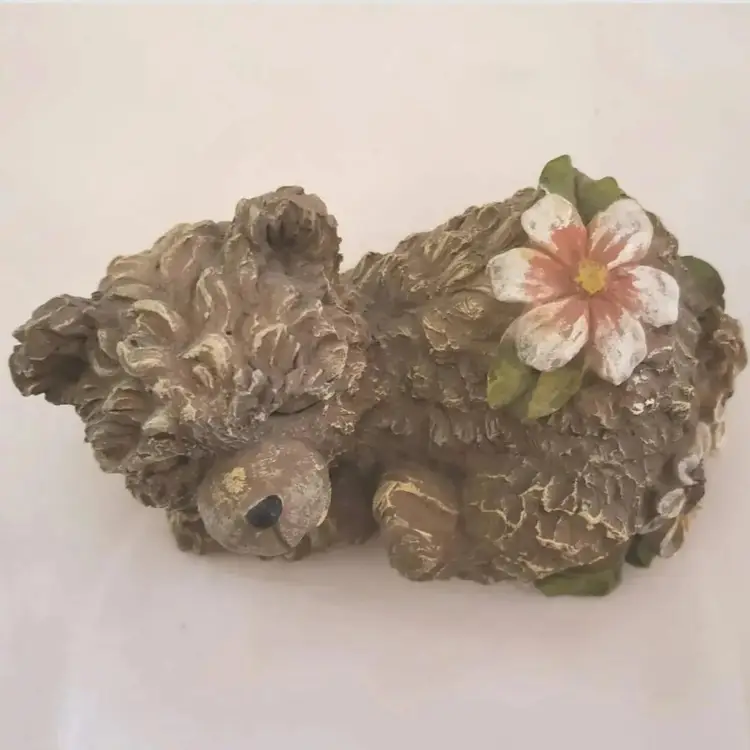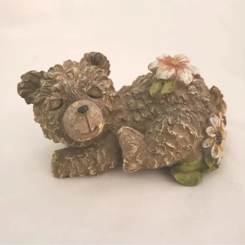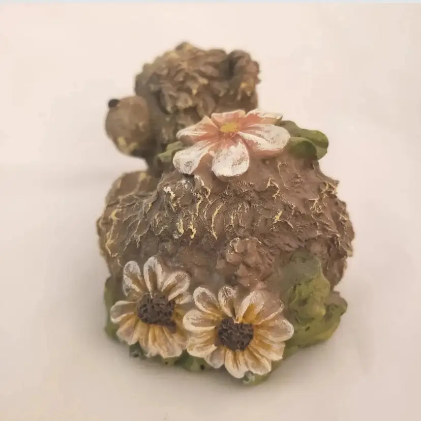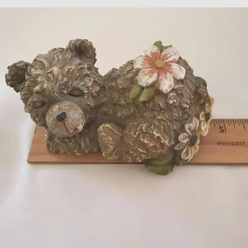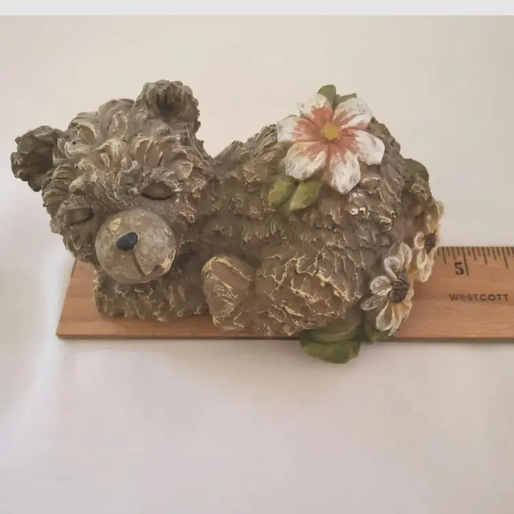 Bear Figurine with Flowers Resin Unbranded 4 7/8" long approximately READ DESCRIPTION. Used condition with rubbing on numerous parts, dust, etc. Please view all photos as they are part of the description and please ask questions prior to purchase when possible.