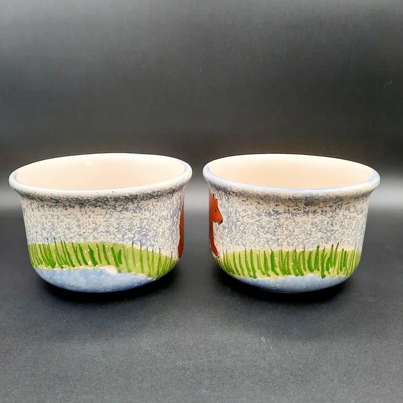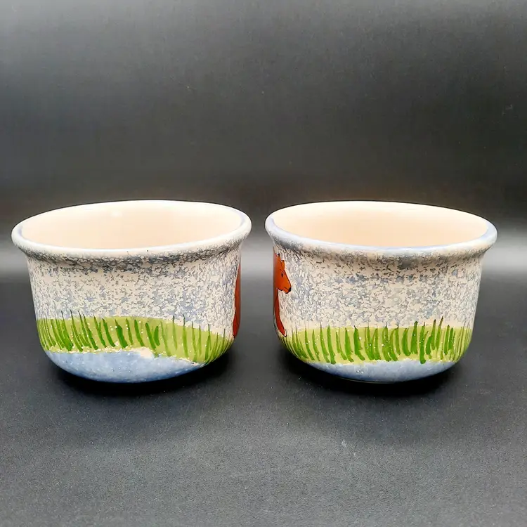3"H x 4 3/4"W in excellent condition with a few typical glaze pinholes.