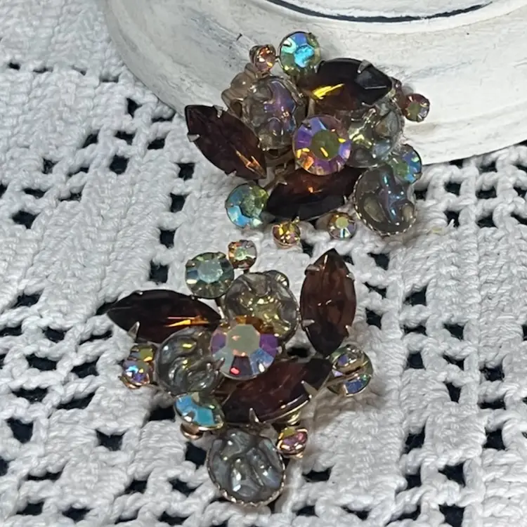 Beau Jewels Topaz Rhinestone Goldtone Clip On Earrings