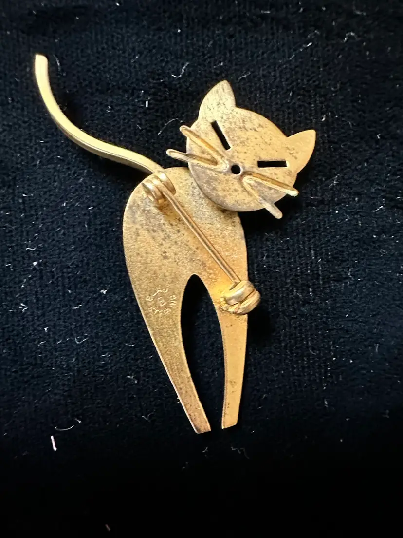 Fun Beau Sterling cat pin with gold wash. It is 1.75”. Very good condition.