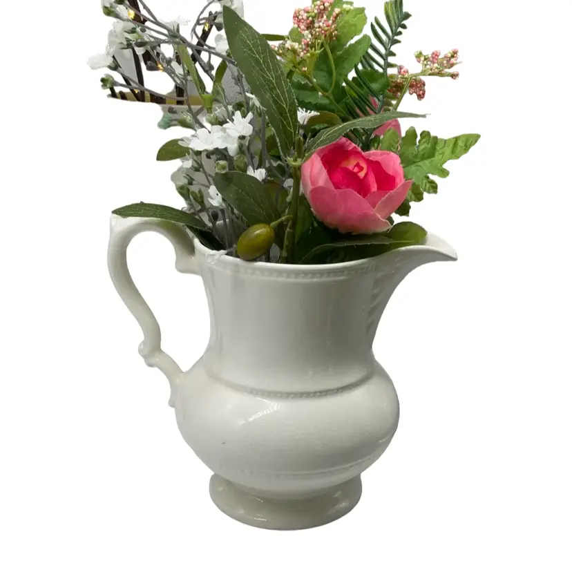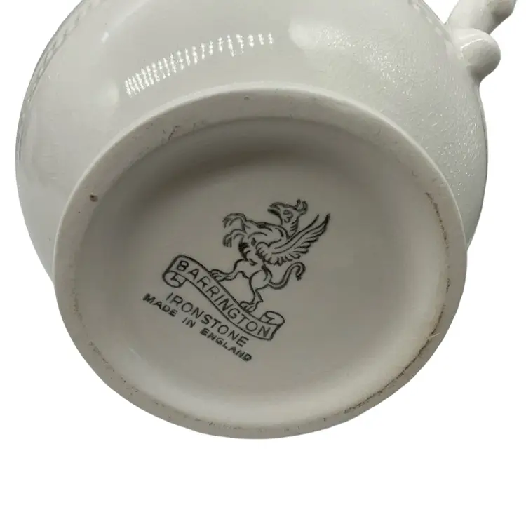 Fabulous Barrington Ironstone pitcher made in England. Bring a hint of cottage core to your decor. Crazing is beautiful no chips at cracks. 6” tall by 7” wide