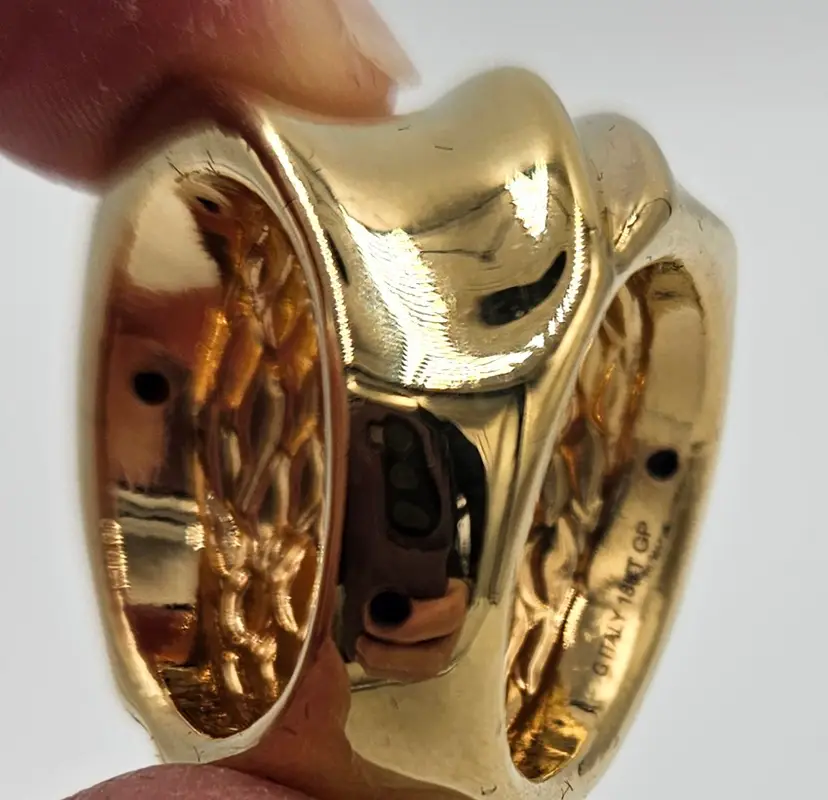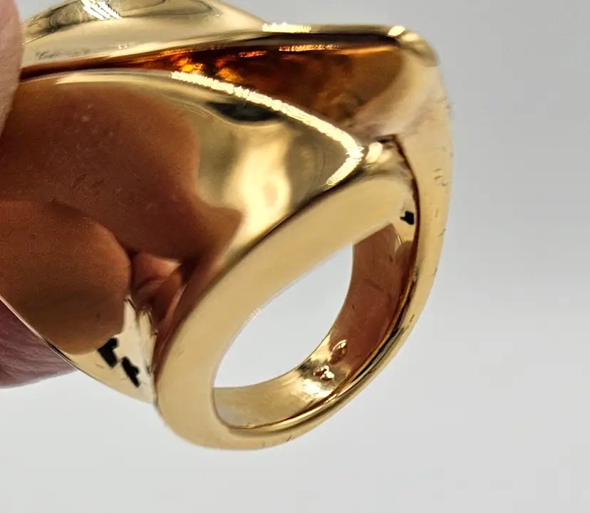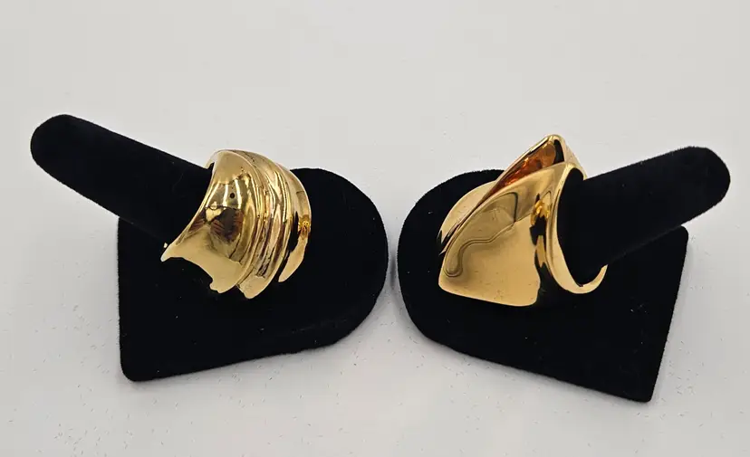 These bold rings measure 1 inch and 1.5 inches. They both have light scratching and scuffs but still look beautiful! Together they weigh 0.6 ounces.