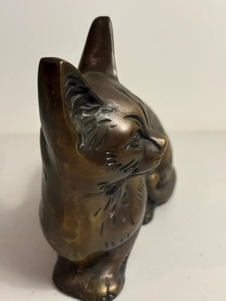The Beautiful Bronze Cat Figurine is a meticulously crafted collectible piece depicting a graceful cat in the medium of bronze. This figurine captures the elegance and charm of the feline form, making it a desirable addition to any cat lover's collection. The detailed craftsmanship and high-quality material ensure that this piece is not only aesthetically pleasing but also a lasting representation of the beauty of cats.