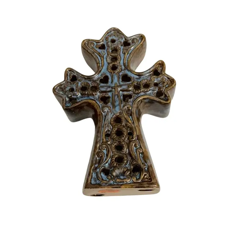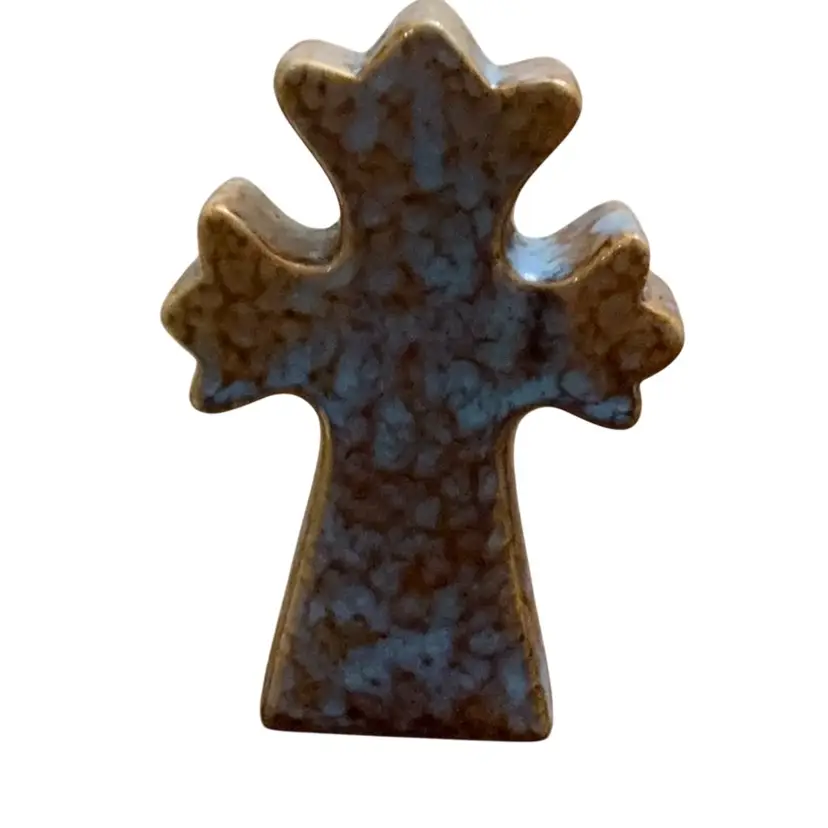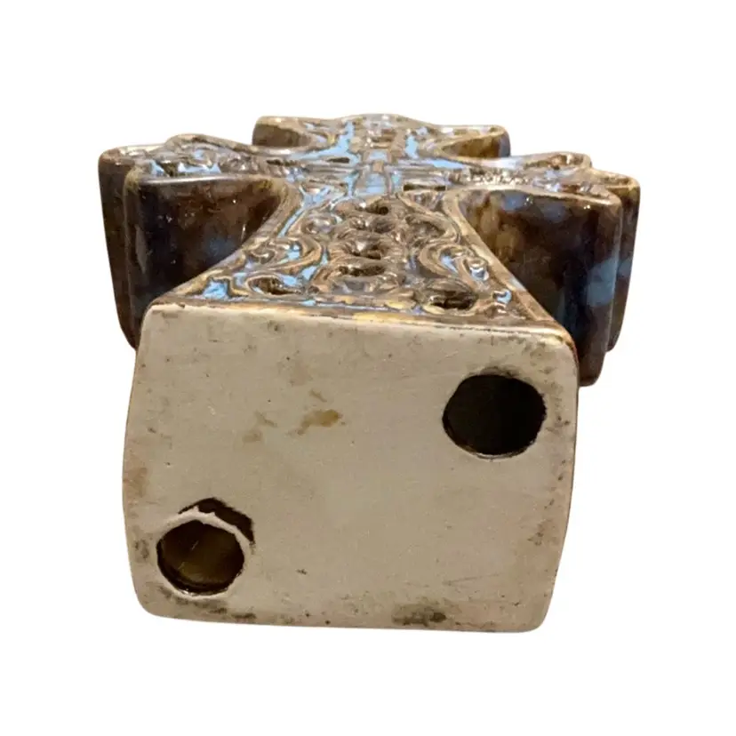 Beautiful Celtic style cross for your shelf or trinket display. Cut out heart,raised rope and floral designs enhance the uniqueness of this item.