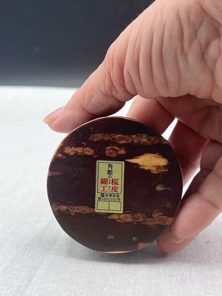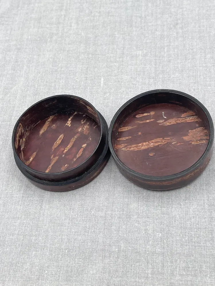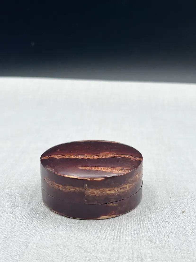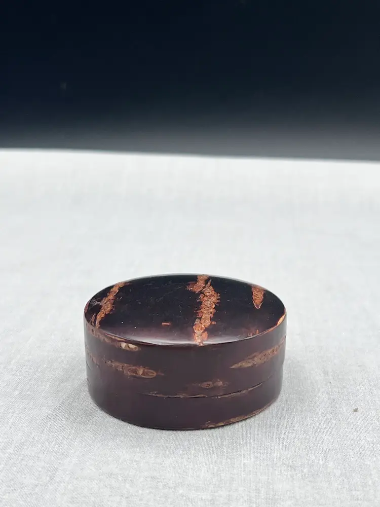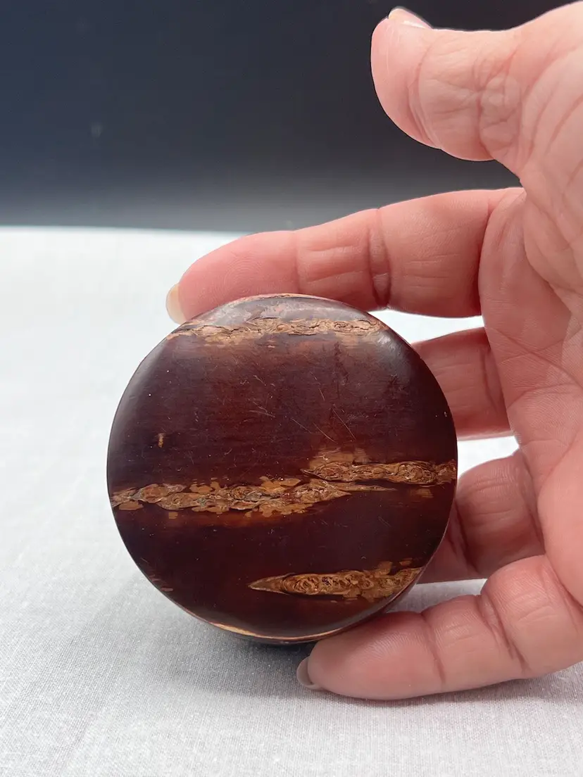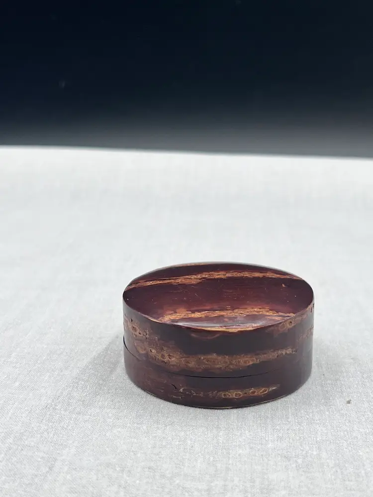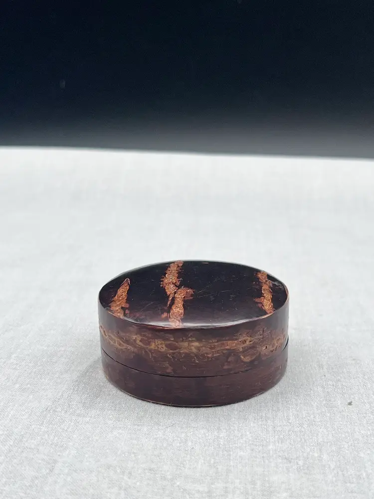 Beautiful Cherry Bark Trinket Box In very good vintage condition 1 1/4" tall x 2 1/2" diameter.