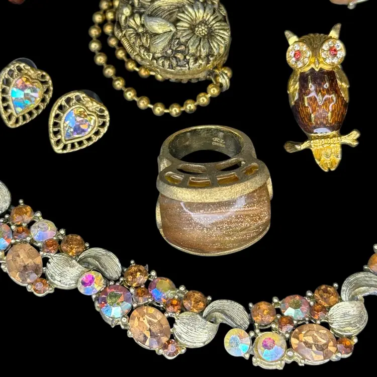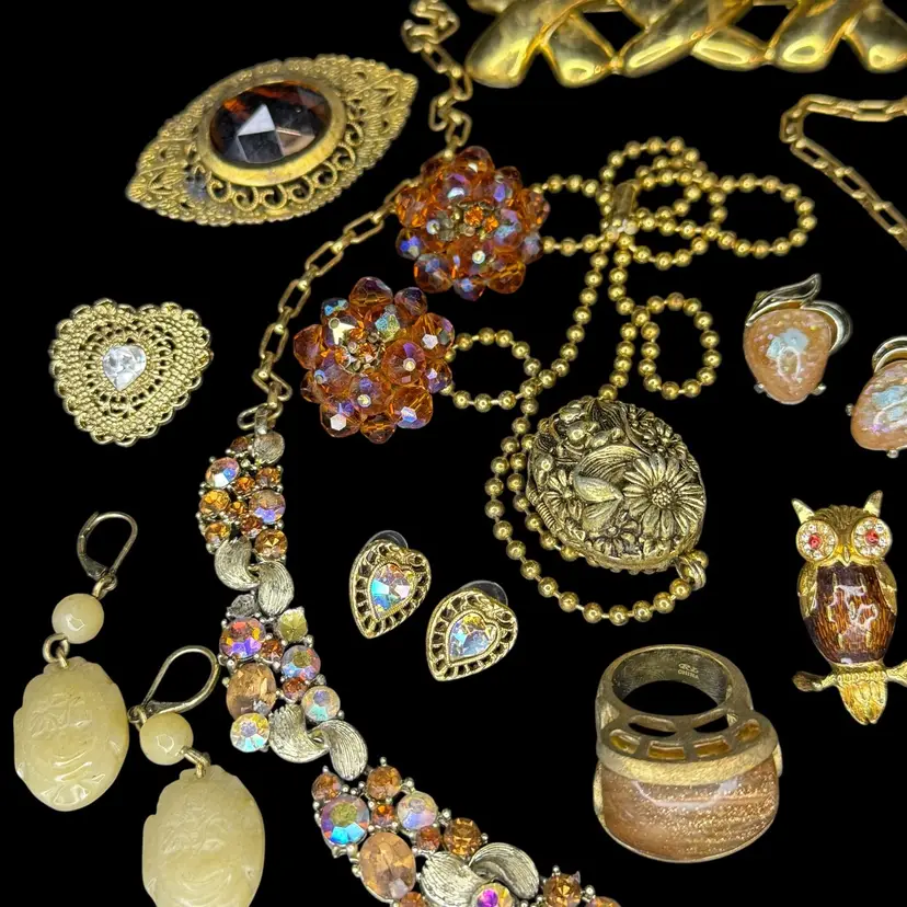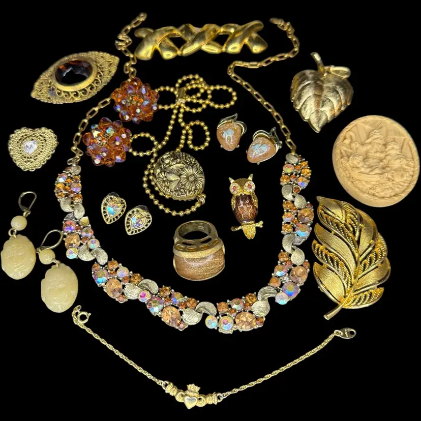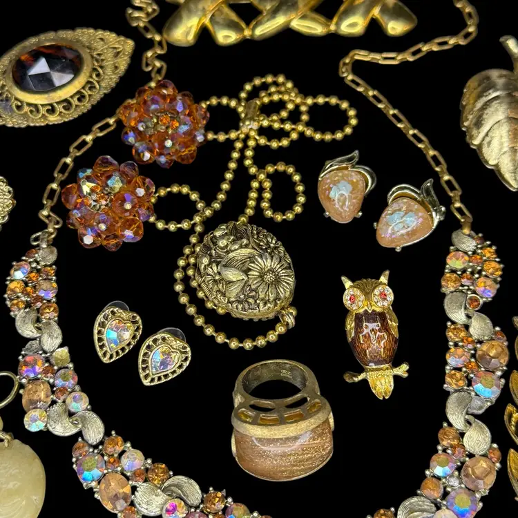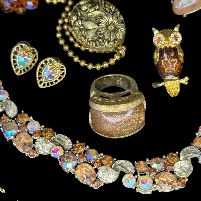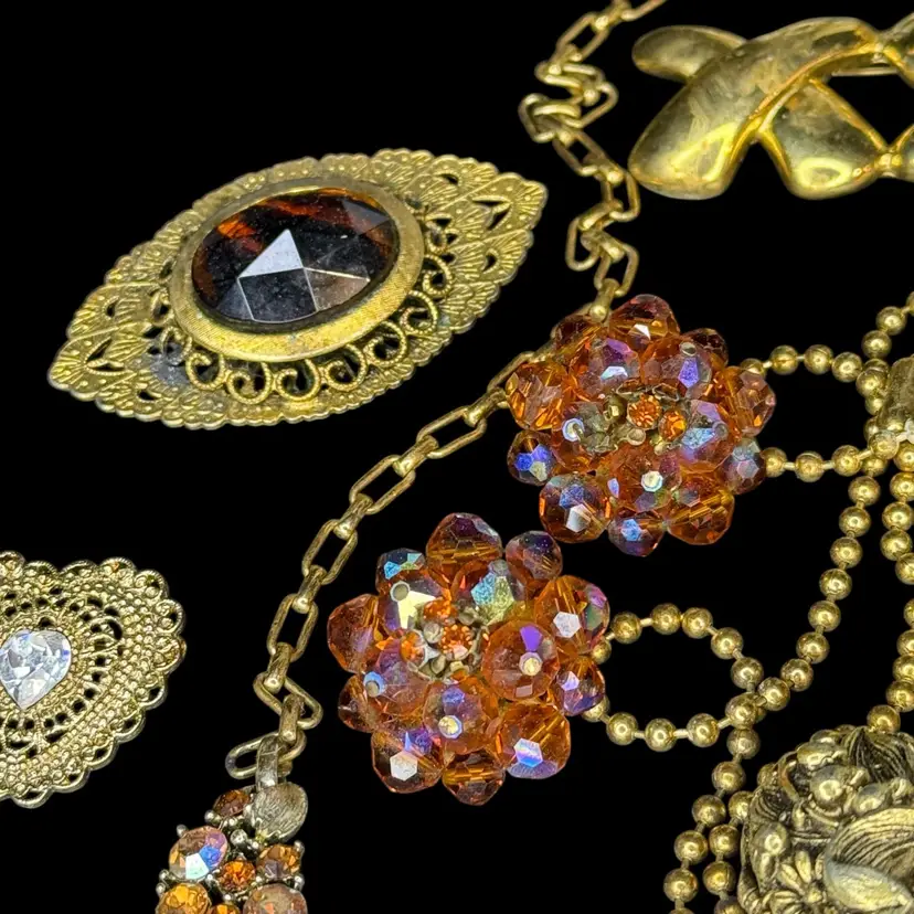 Beautiful Citrine Amber Colored Rhinestone Curated Lot w/Lisner Avon Freirich Trifari & more *95 shipped anywhere in US - please send your PayPal to claim