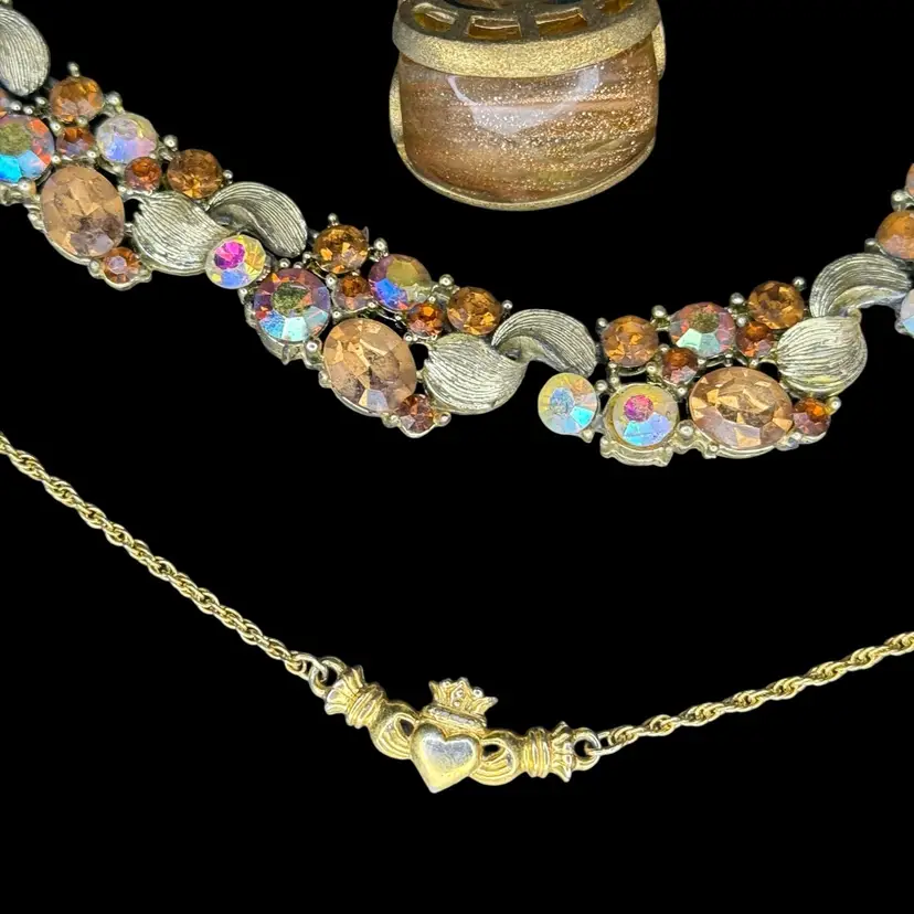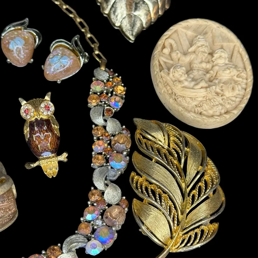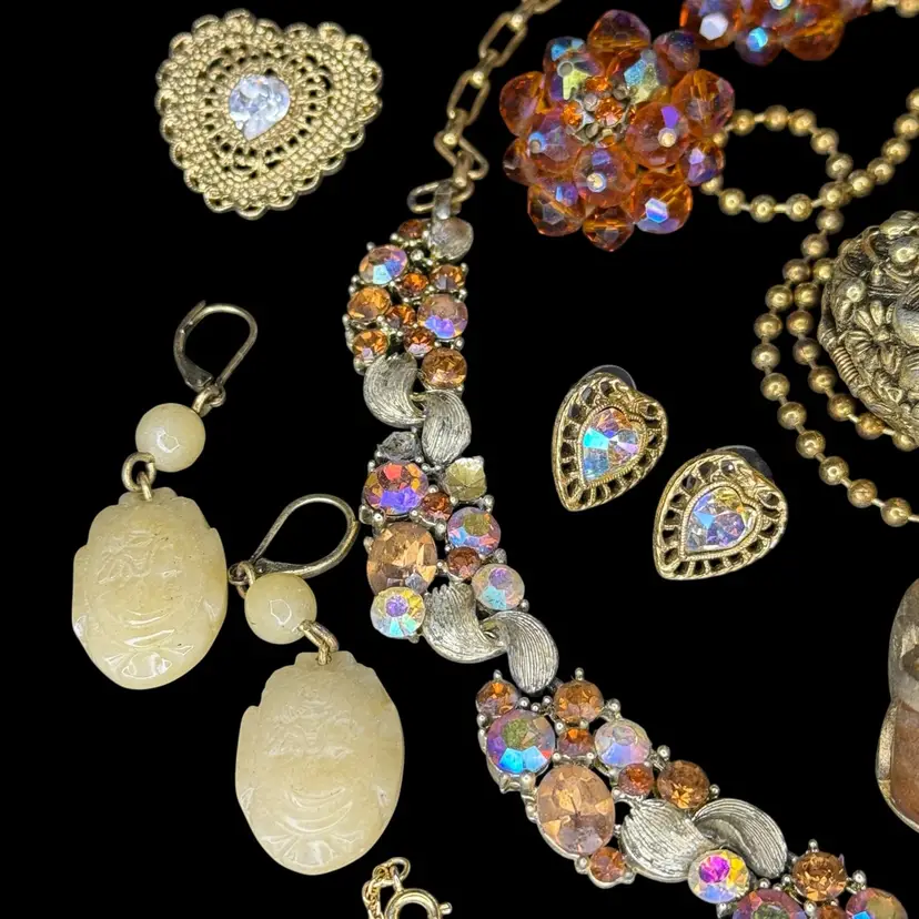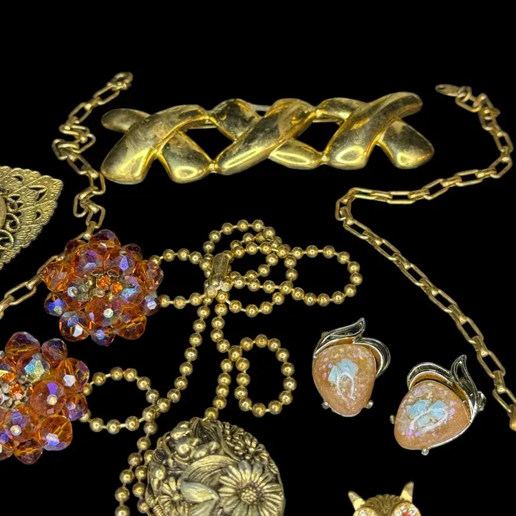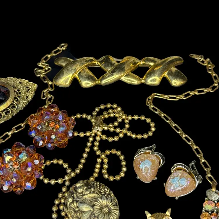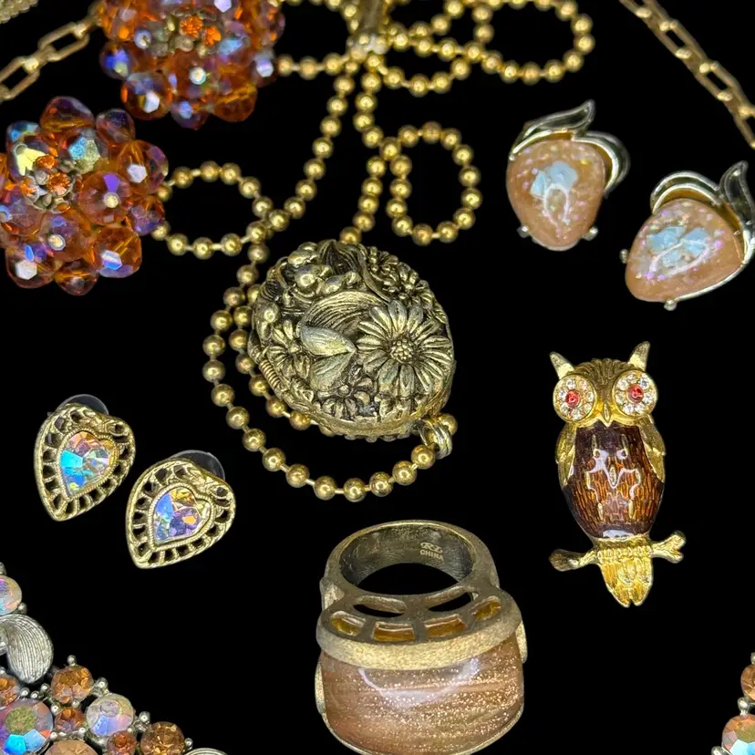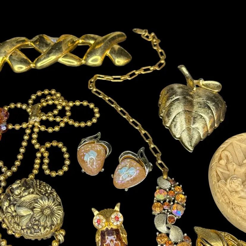 Beautiful Citrine Amber Colored Rhinestone Curated Lot w/Lisner Avon Freirich Trifari & more *95 shipped anywhere in US - please send your PayPal to claim