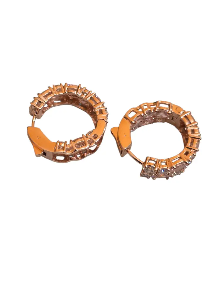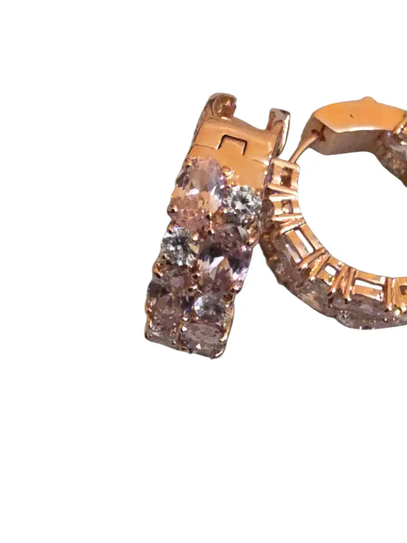 Beautiful Contemporary CZ Clear and Pink Pink Gold Pierced Hoop Earrings (A9470)