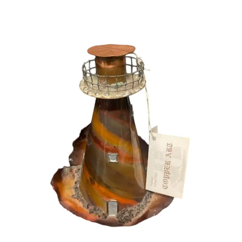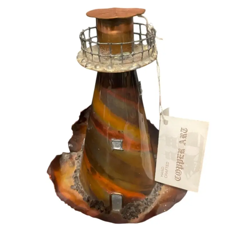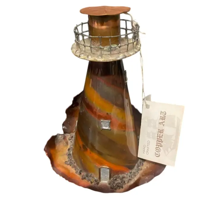 Beautiful Cooper Art Light House Figurine, With Description Tag