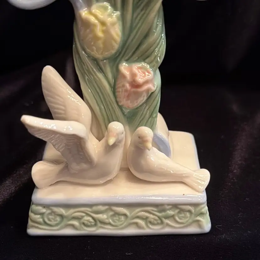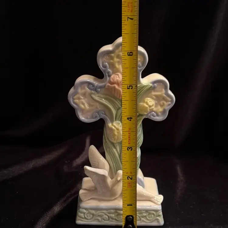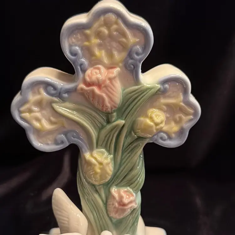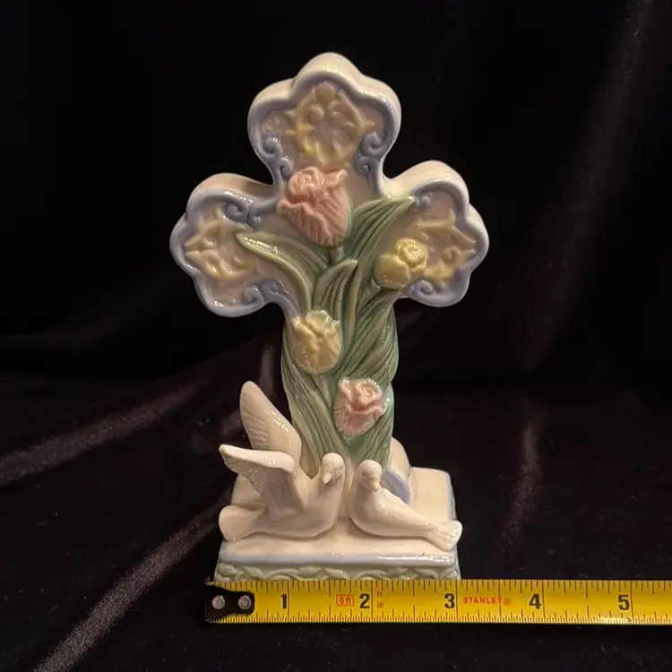 Beautiful Cross With 2 Doves & Flowers ~ Porcelain/Ceramic Glazed Figurine