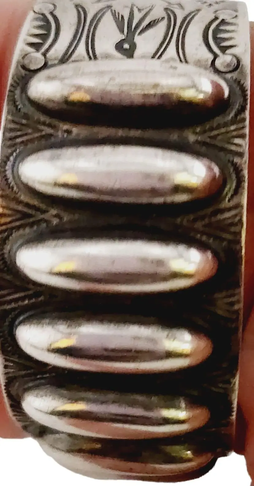 Size: At the widest point it's 1.25". Color: Silver Condition: Very good vintage Signed: None Details: Super decorative, not signed that I can see. It tests as sterling with the acid test, but might be coin silver. I have researched this for a bit and have seen similar ones but not exact, many state early 1900s. Amazing designs all throughout. Weight is 42.40 grams.