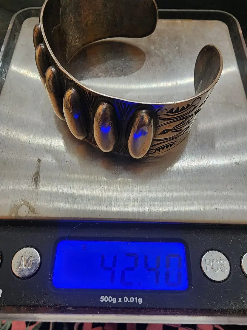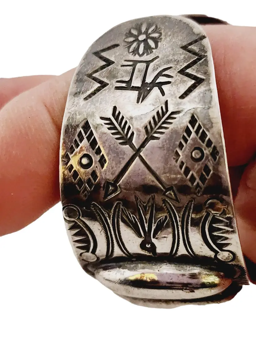 Beautiful Early Native American Cuff Silver Bracelet (A4858)