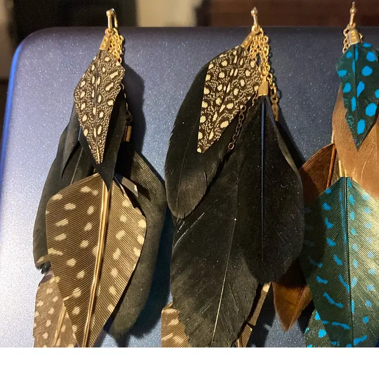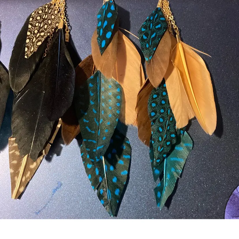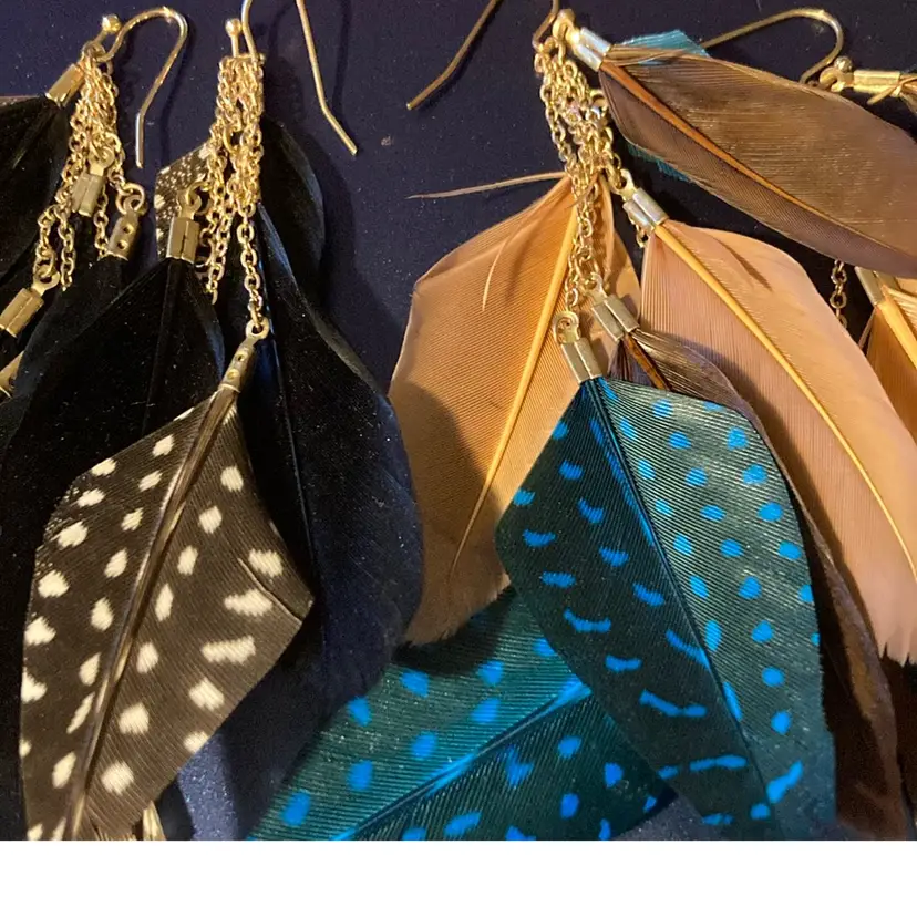 Two pair of beautiful feather earrings. Extra long, dangles new never worn.