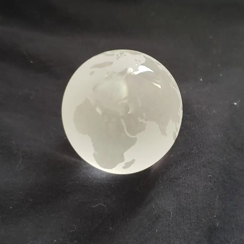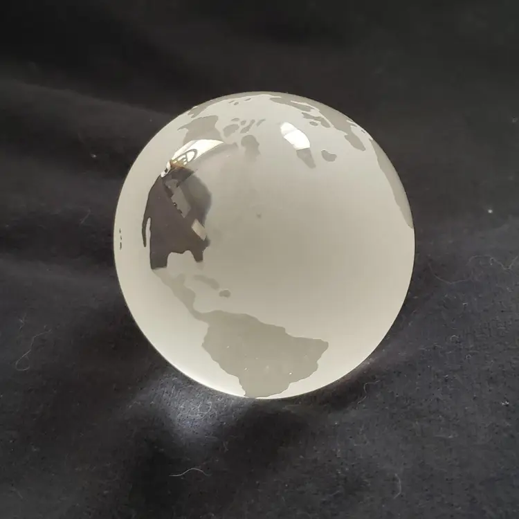 Baseball sized paperweight of the globe. Frosted parts are the oceans and clear are landmass. No chips or cracks, perfect condition, NOT Tiffany and Co.