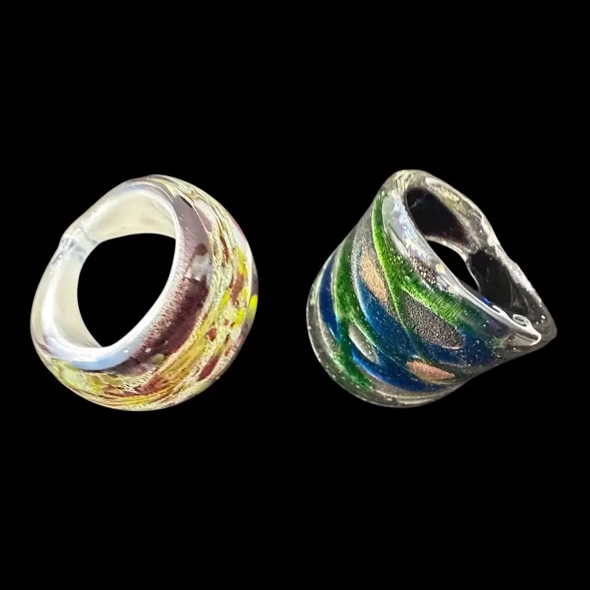 2- Boho Beautiful Handmade Glass Rings Combined progressive Shipping! Sizes Blue 7 & Gold 7.5