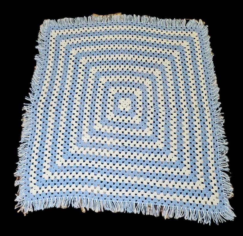 – Brand: "Handmade" – Type: Multi-Purpose Blanket – Size: 42 x 42 – Custom Bundle: No – Color: Blue and White – Model: BLANKET – Personalized: No – Features: Crochet – Gender: Unisex
