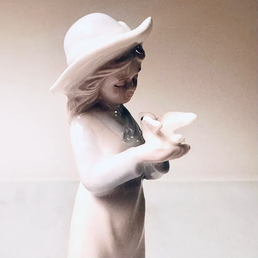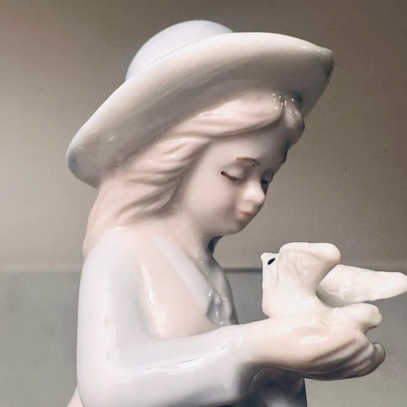 This listing is for this cute darling little figurine of a young girl holding a dove. She is approximately 6” tall, no signature, just a date of what I believe was the date acquired by original owner. They are both on great vintage condition, no nicks or cracks. Please view all of the photos for overall condition. I try to describe my items as much as possible and photos are a big part or the description. I would be happy to combine shipping if ordered at the same time. Overages over $3 will be refunded. Please feel free to message me with any questions. This listing has been cross posted. Thanks for looking!