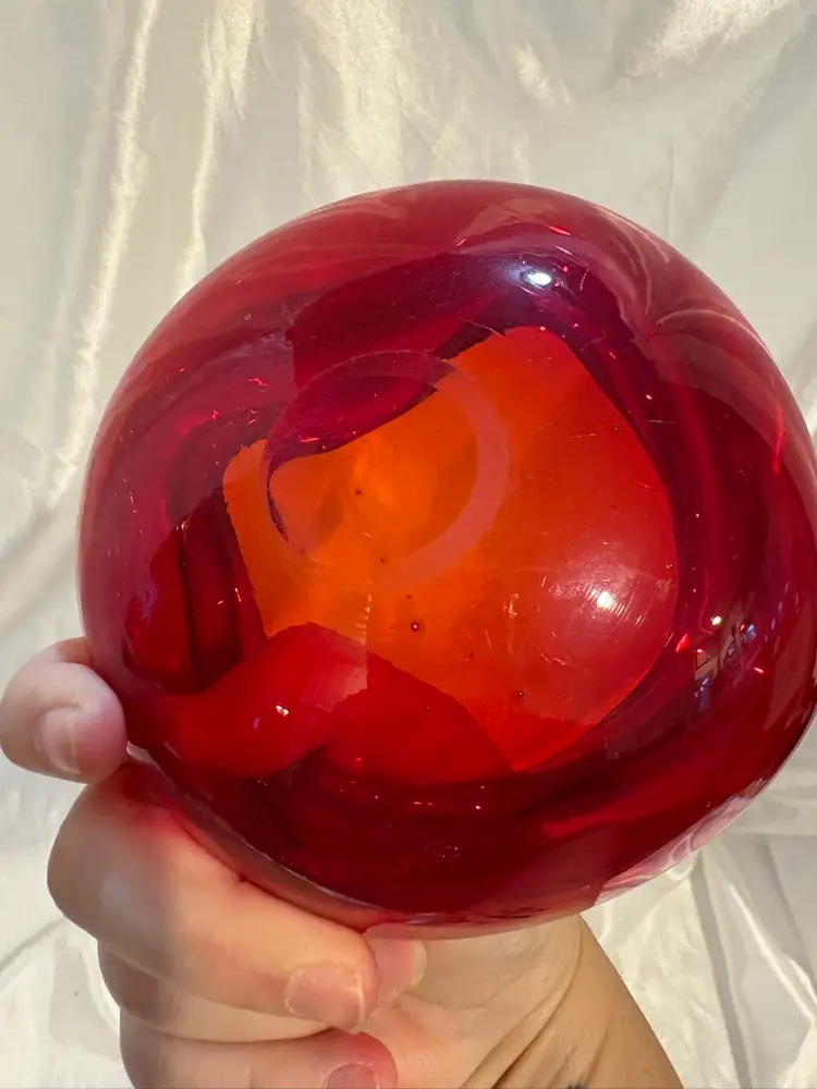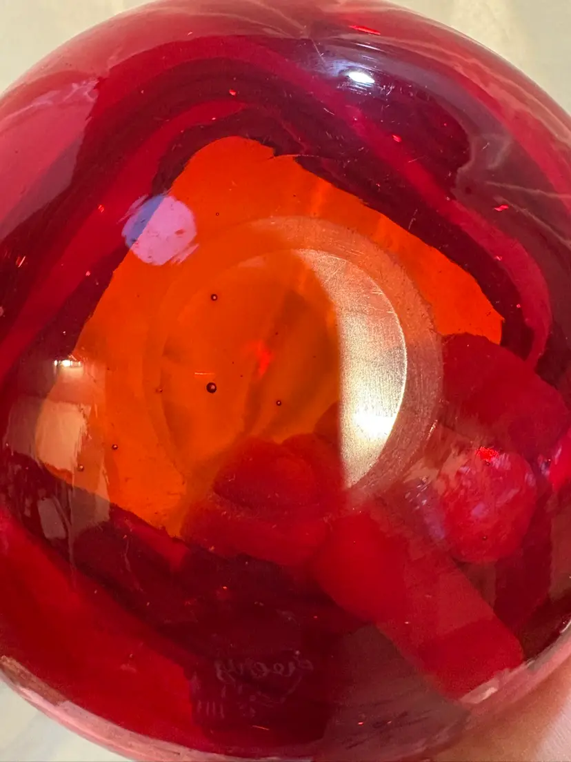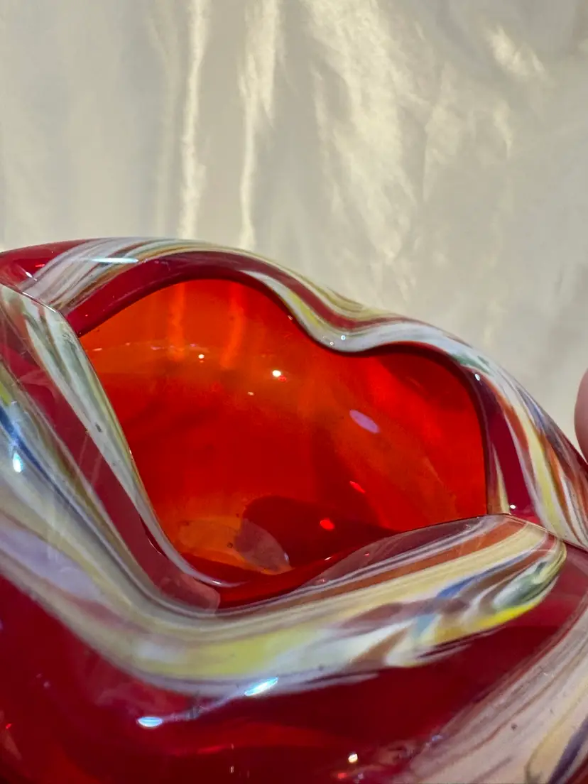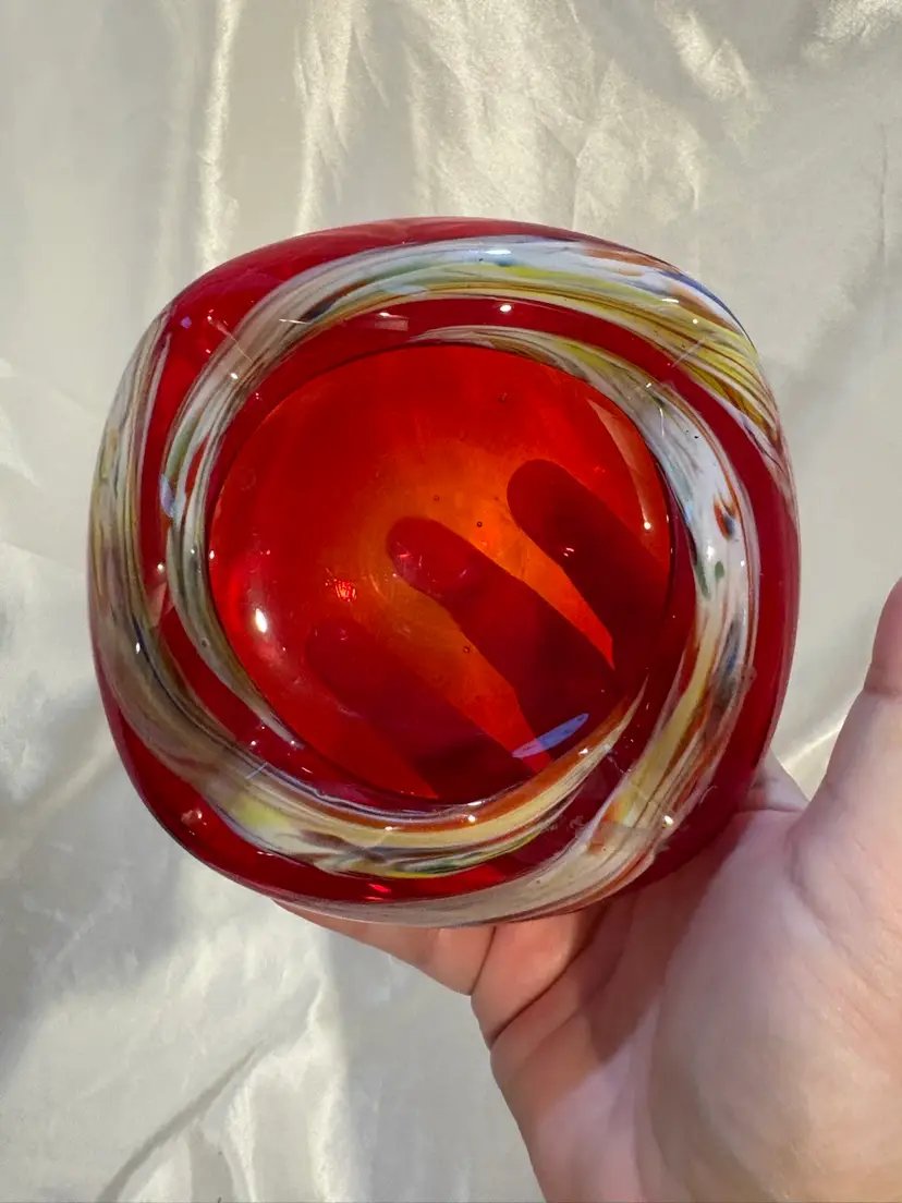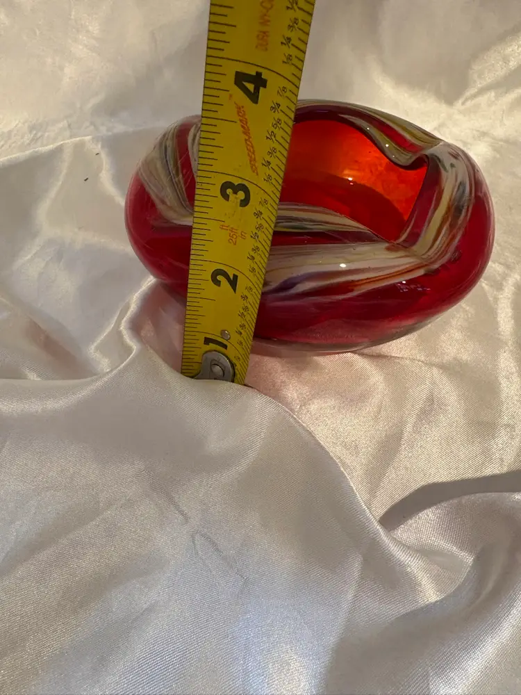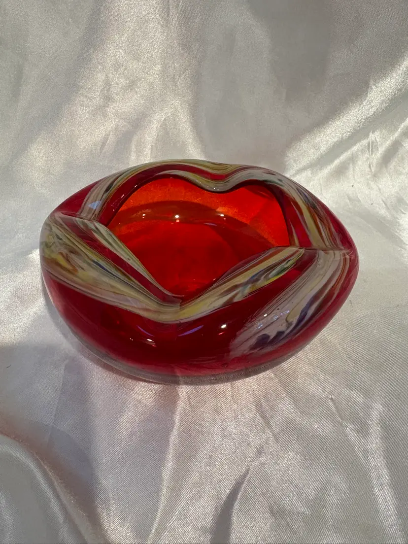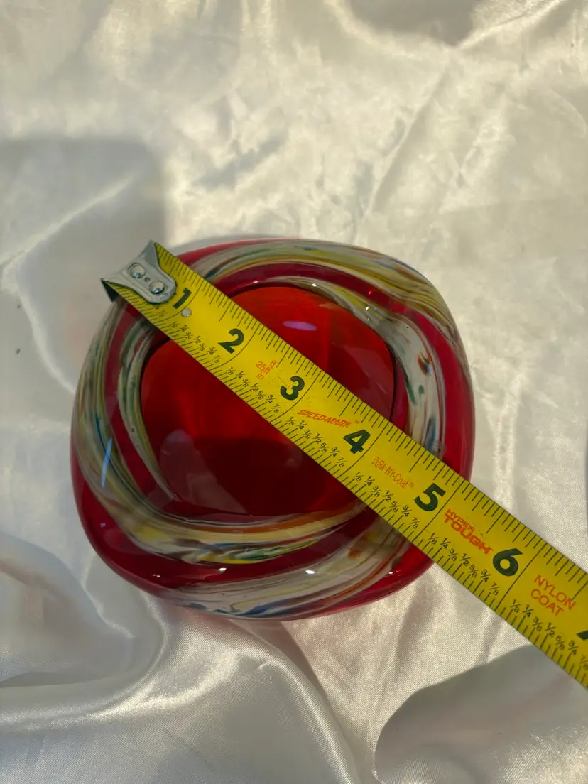 Beautiful Red Art Glass Bowl Ashtray Hand blown swirl design